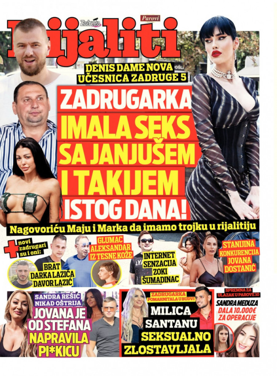 U ovom broju donosimo vam, najsvežije i najšokantnije priče o Denis Dame, Janjušu, Takiju MArinkoviću, Milici Kemez, Sandri Rešić i drugima...