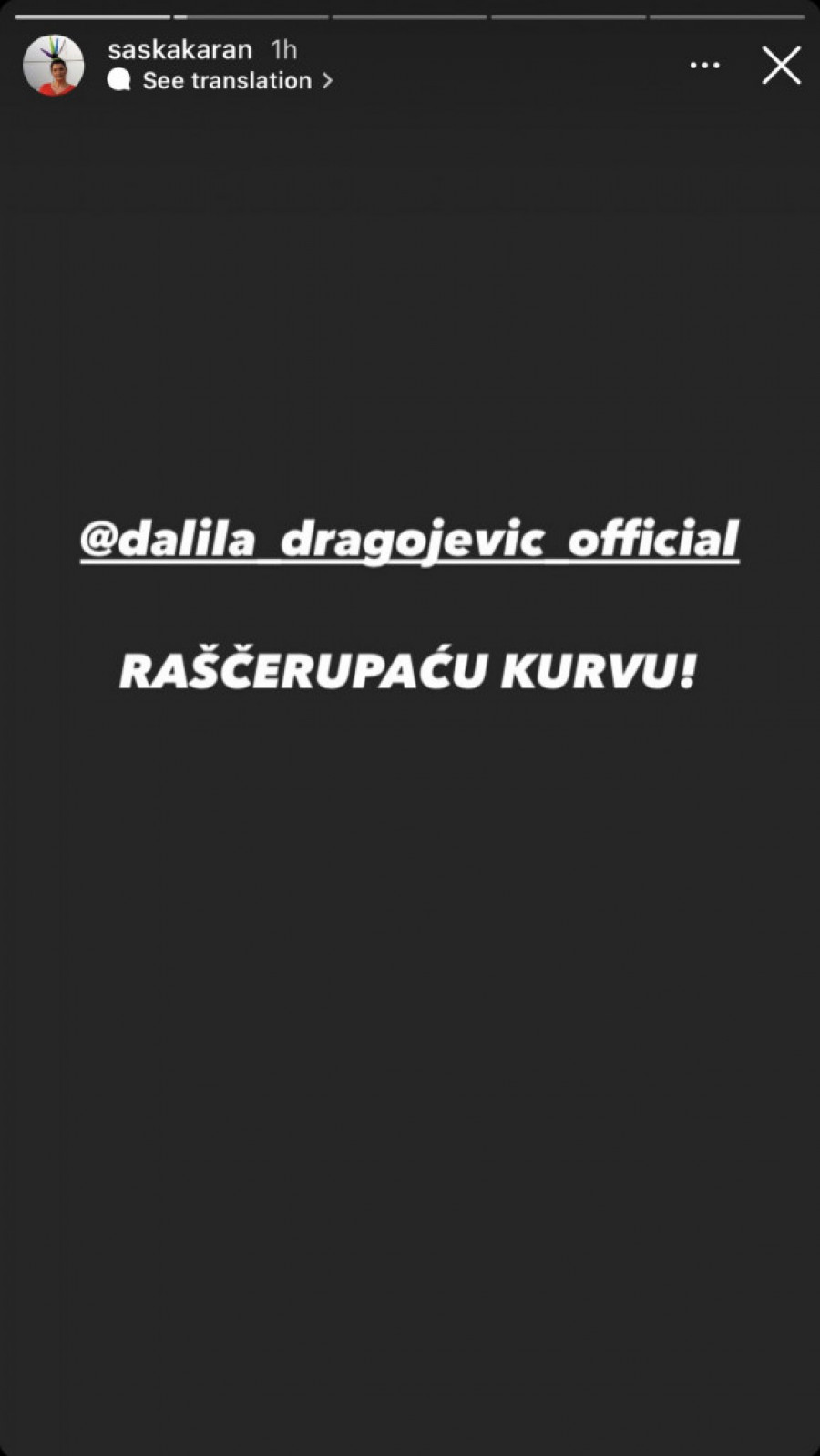 Na Instagram profilu Saška nije imala problem da iznese svoje mišljenje, po čemu je naširoko poznata, pa je tako ovaj put otišla korak dalje i otkrila da će ući u rijaliti kako bi se isključivo obračunala sa Dragojevićkom. Saška je čak i označila zvaničan profil Dragojevićke, a tom prilikom joj je uputila žestoke psovke i uvrede.