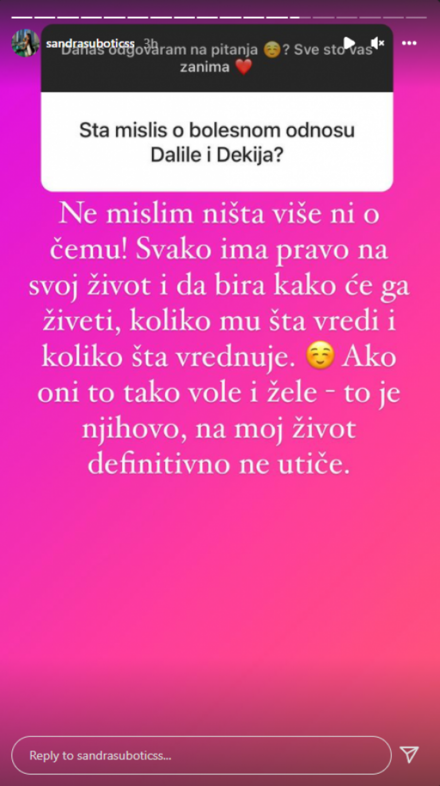 Aleksandra Subotić odgovarala je na pitanja svojih pratilaca na Instagramu koja se tiču Dalile Dragojević.