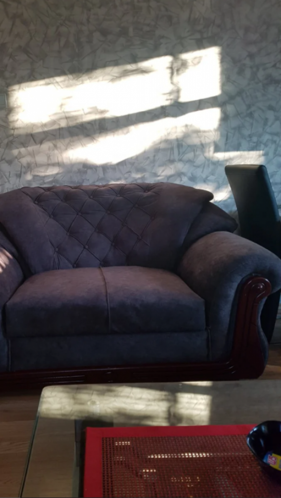 Dnevna soba, gde Marko najviše voli da provodi vreme sa svojom porodicom, opremljena je udobnim nameštajem, na kom sedi i prati omiljene emisije.
