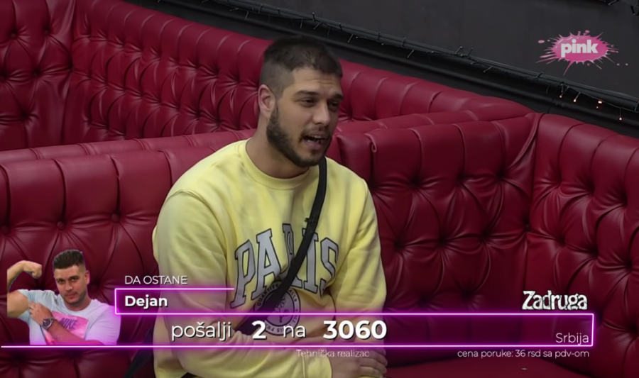 - Ja je gurkam kad vidim da se provokativno obuče, pa joj na sve strane ispadaju si*e. Neću da se svađam s njom, nije mi to poenta. Tačno je da nam je odnos turbulentan, da se svađamo i bijemo non-stop, ali to je iz ljubavi. Meni je glupo da sedim pored nje i da gledam kako joj muškarci gledaju u si*e dok pričamo ili jedemo. Nije tačno da sam je šutirao, malo je ćušnem, ali to je samo da bi naučila da ućuti kad treba - pričao je Dejan.