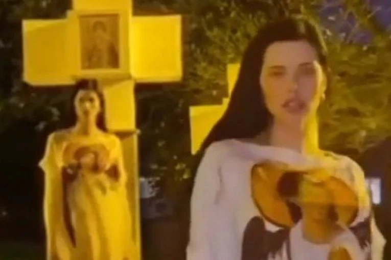 Naime, Deniz se fotografisala ispred Hrama Svetog Save u Beogradu, pri čemu je na sebi nosila haljinu sa motivima freske Belog anđela.