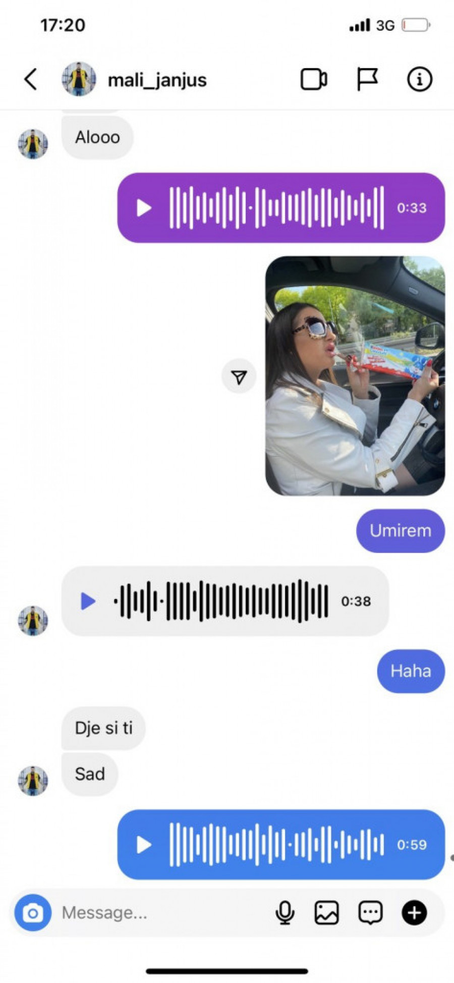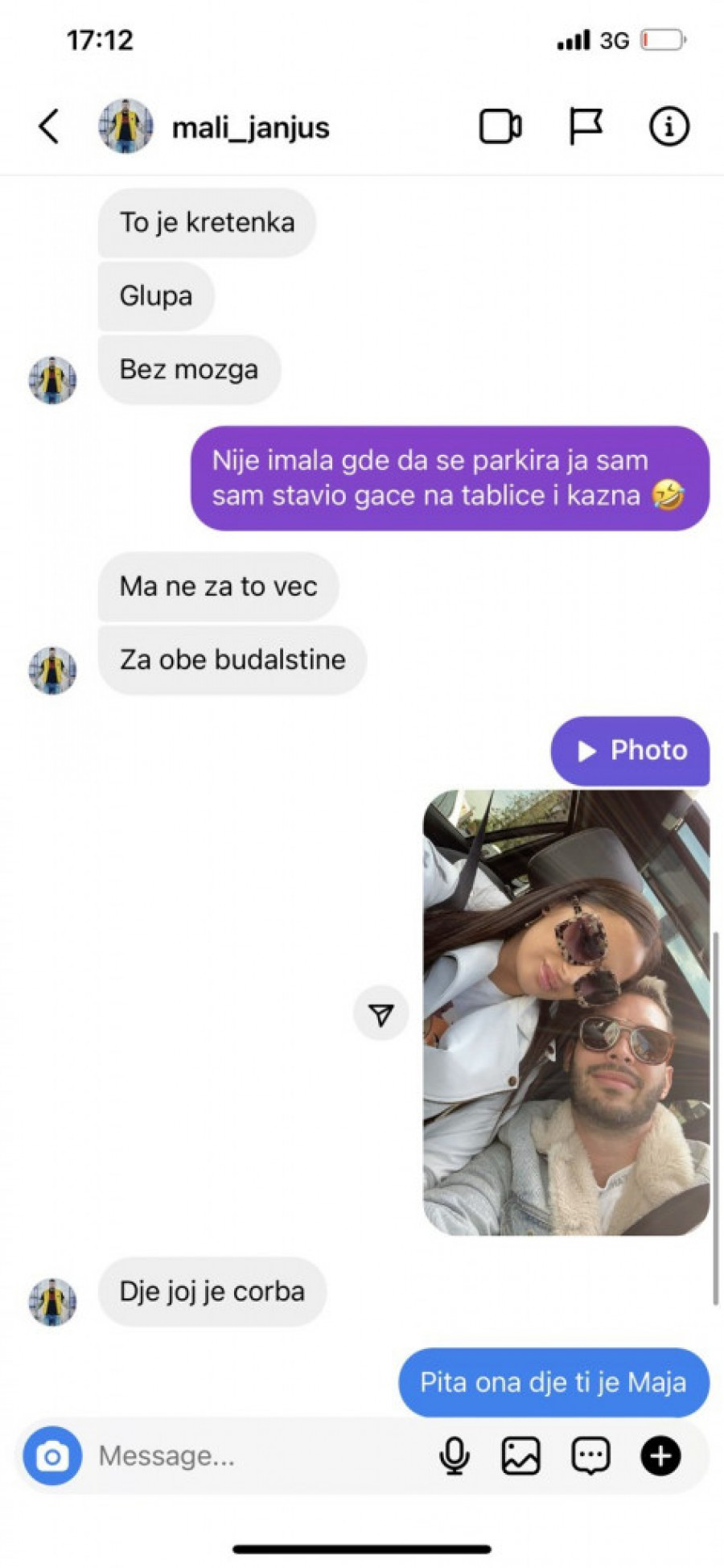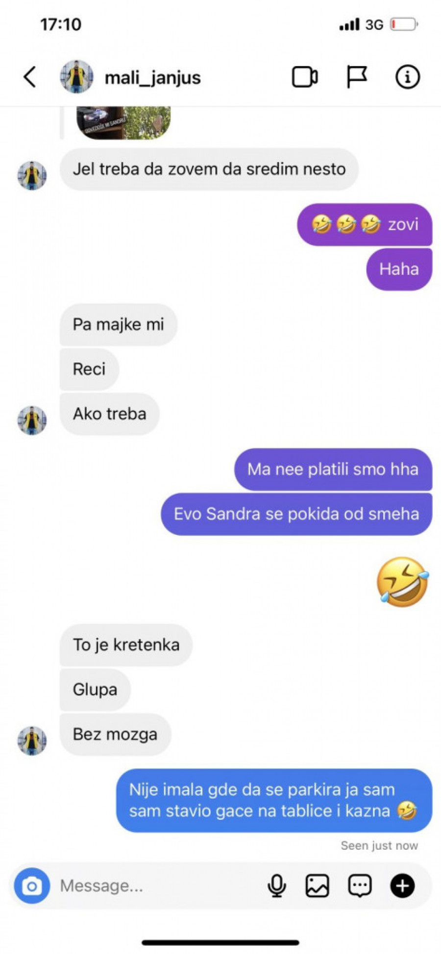 - Je l' treba da zovem da sredim nešto? Majke mi, reci ako treba - glasila je prva Janjuševa poruka, nakon Sandrine kazne sa policijom, pa dodaje:
