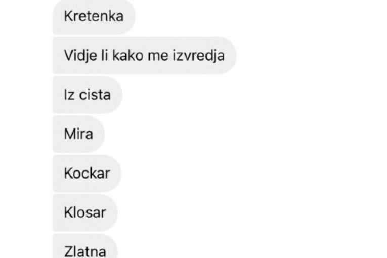 - Ja ne znam. Kretenka, vide li kako me izvređala iz čista mira, kockar, klošar, zlatna koka, neka, 'alo!