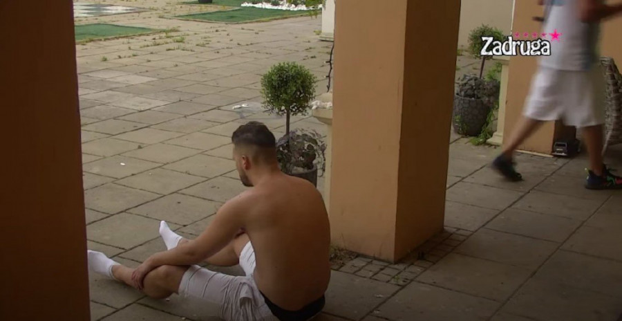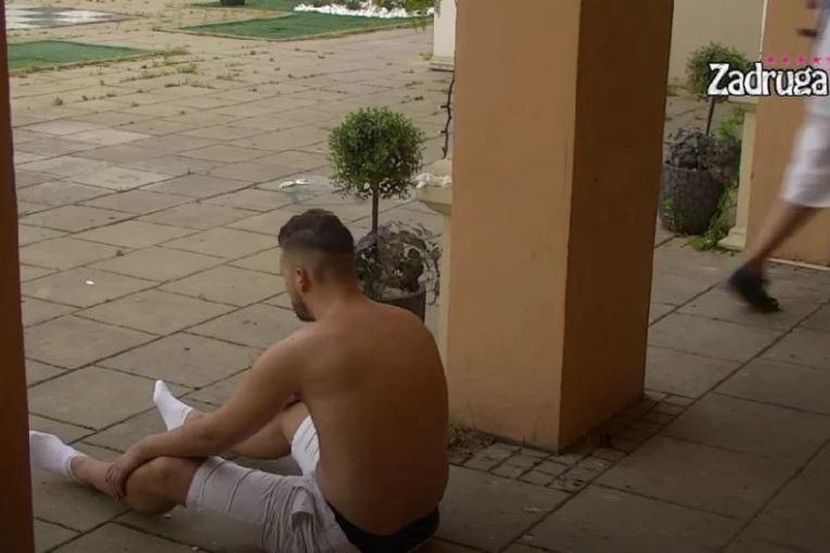 Osmakčić je počeo da puzi te je zašao napolje i seo na pod. Miki Đuričić i devojka Viktorija Mitrović su ga gledali.