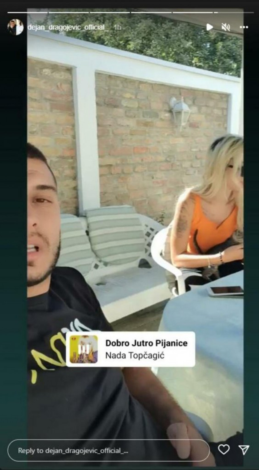 Dejan je preko ovog storija stavio i pesmu "Dobro jutro, pijanice", koju izvodi Nada Topčagić. Potom se Aleksandra pohvalila da se igrala sa mačkom iz dvorišta u Veterniku.
