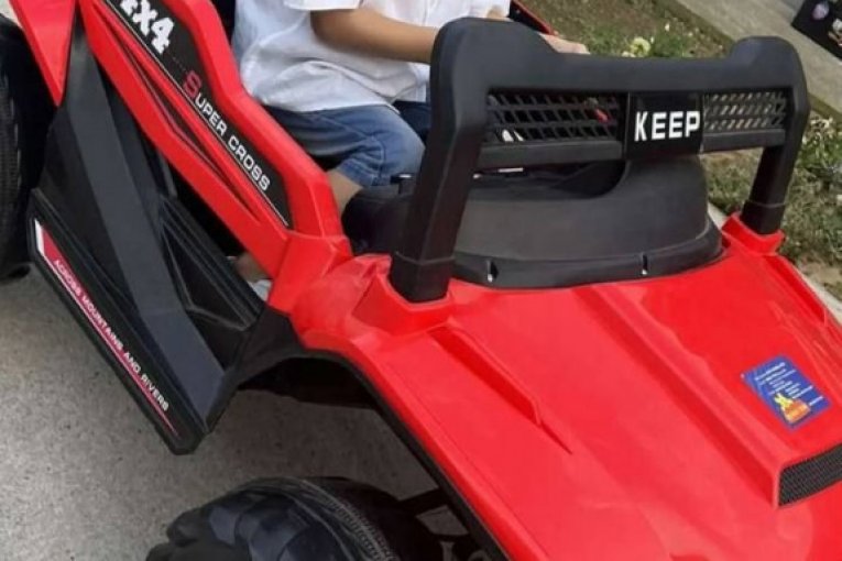 Pored mnogo igračaka, Željko je dobio i automobil na struju, crvene boje, a oduševljenje nije krio.