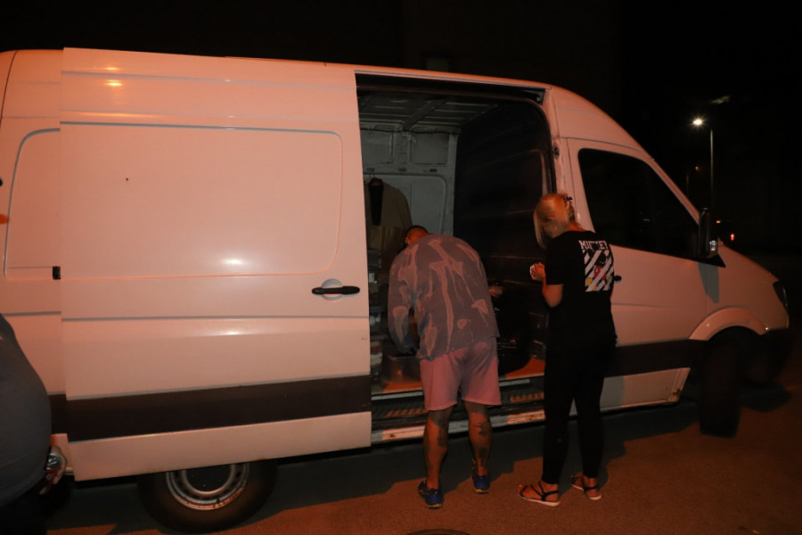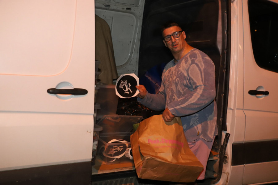 Kristijan Golubović stigao je u Šimanovce kombijem koji je krcat crnih kesa iz kojih ispadaju stvari i patike.