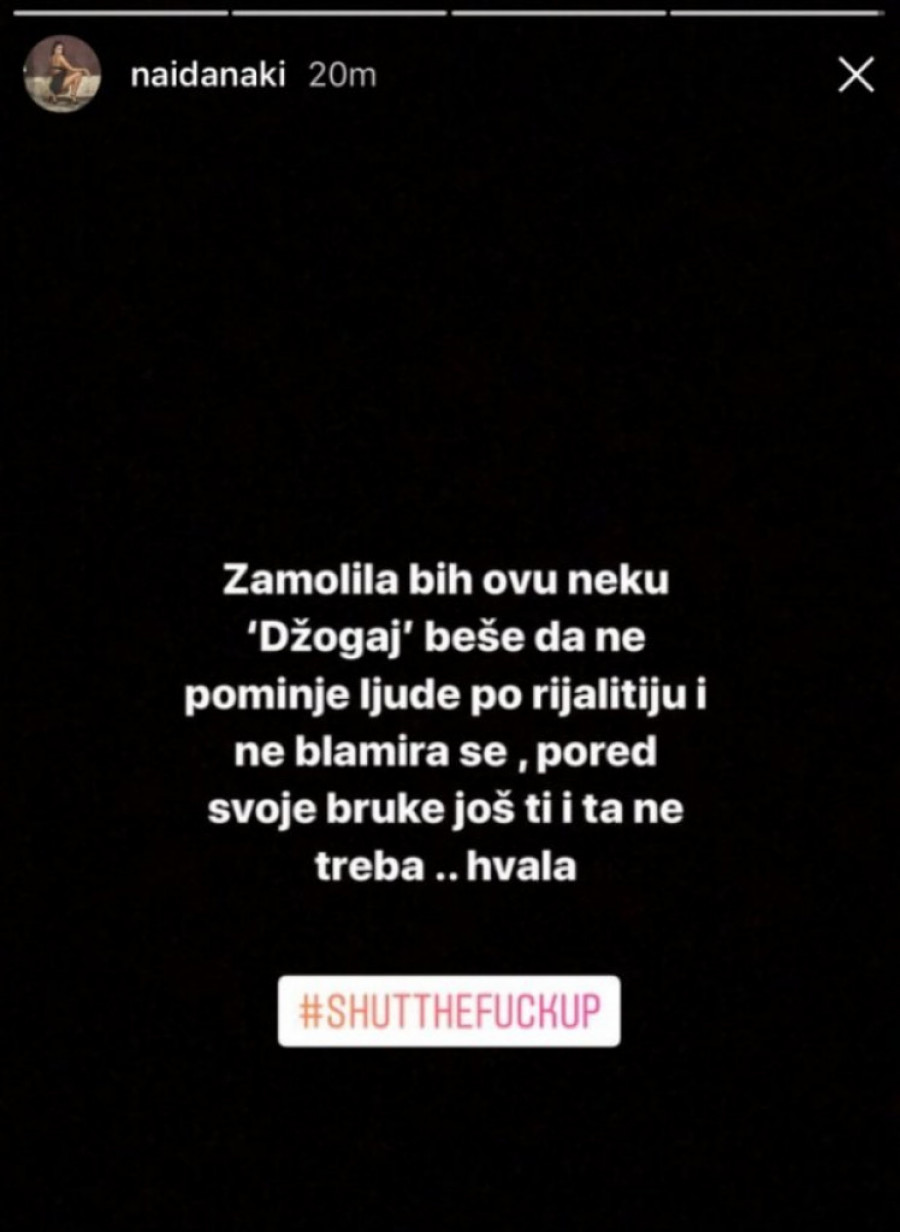 Foto: instagram.com/naida.nakiLuna je sinoć u Zadruzi pričala o tome, pa je spomenula i Gastozovu devojku Naidu, na šta je ova burno reagovala.