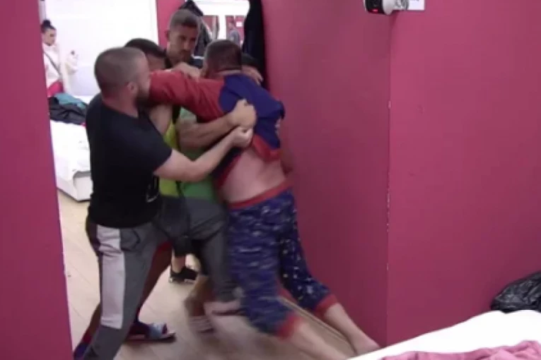 On je zaleteo iz spavaće sobe, pa su ga zadrugari uhvatili i oborili na krevet. Bojan Simić pritrčao je u pomoć.