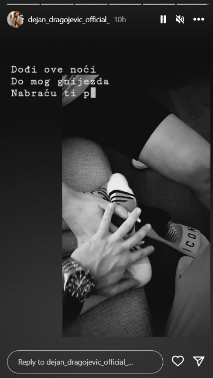 Dragojević je sinoć na Instagramu podelio video snimak na kom on stavlja svoju ruku na ruku određene ženske osobe, čiji se nokti i noge jasno vide, uz tekst jedne numere.