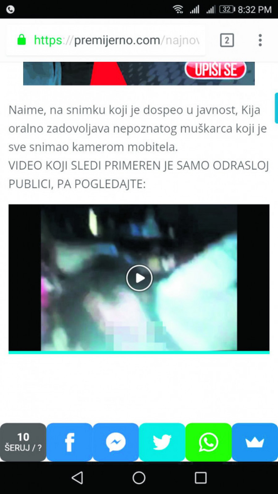 Foto: printscreen/TVPinkSamo dan nakon što je još uvek zakonita supruga Slobodana Radanovića provela noć ispod pokrivača sa Filipom, gde su navodno imali seks i što je šokiralo javnost, ali i članove njene porodice, pojavio se snimak sa eksplicitnim sadržajem. To je izazvalo polemiku na društvenim mrežama da li je Kija zaista akterka pornića.