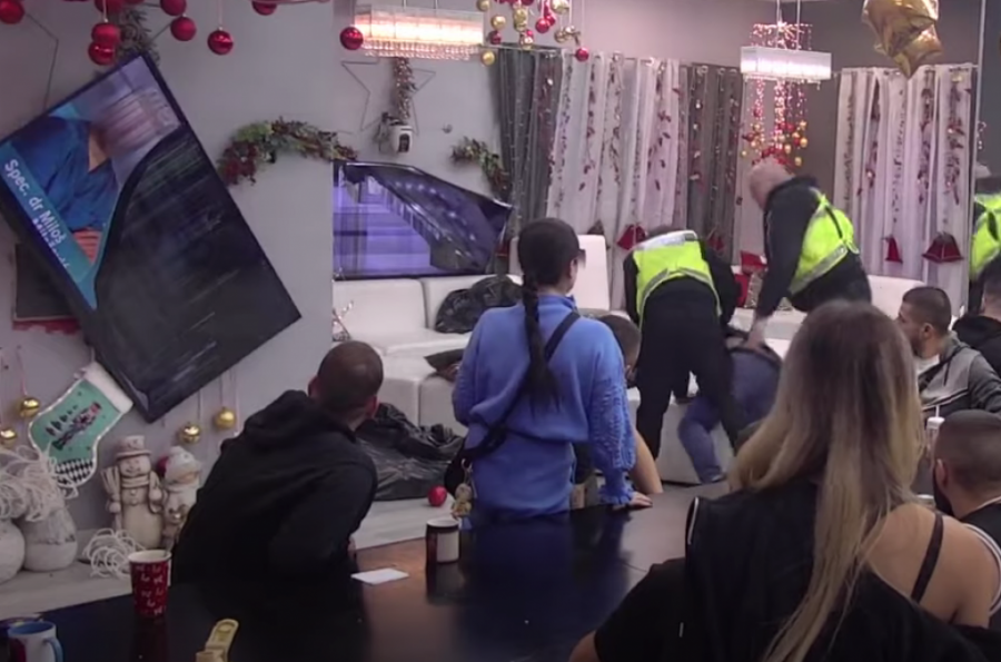 Naime, Bebica je prišao televizoru, te ga je iz sve snage udarao i lomio, a obezbeđenje reagovalo je munjevitom brzinom.
