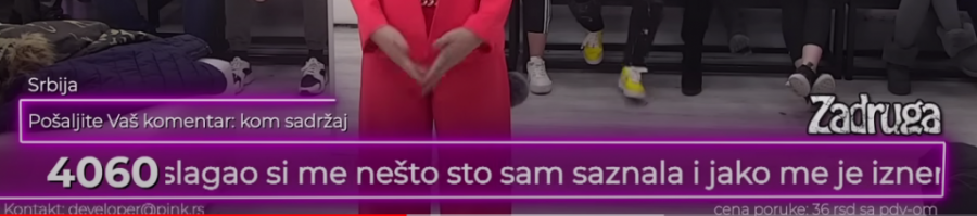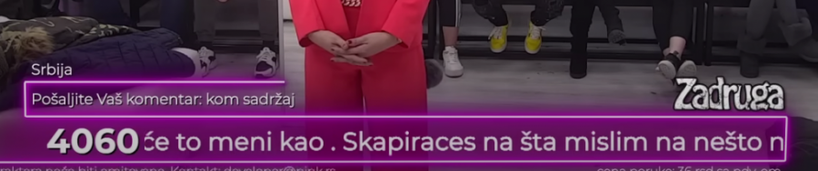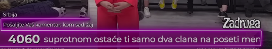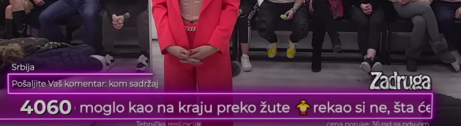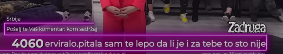 U toku trajanja rijalitija ,,Zadruga" gledaoci imaju pravo da šalju poruke koje trčećim slovima prolaze u dnu ekrana. To su od nedavno počeli da koriste porodice kriminalaca, koji u zatvorskim ćelijama imaju pravo da gledaju ovaj najgledaniji rijaliti.