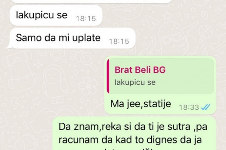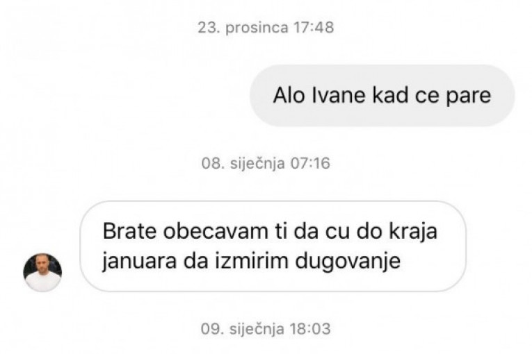 Naime, kako saznajemo, Ante je Belom pozajmio novac, u vrednosti od 230 evra. Međutim, iako je nekoliko puta pokušavao da dođe do Ivana, kako bi dobio svoj novac nazad, to se nikada nije desilo.