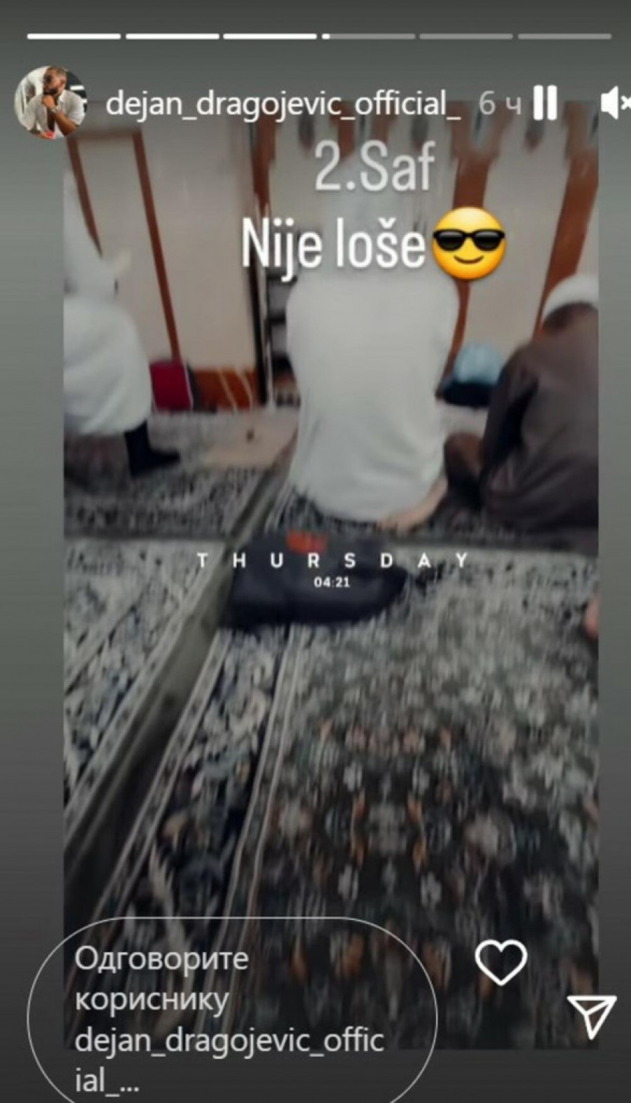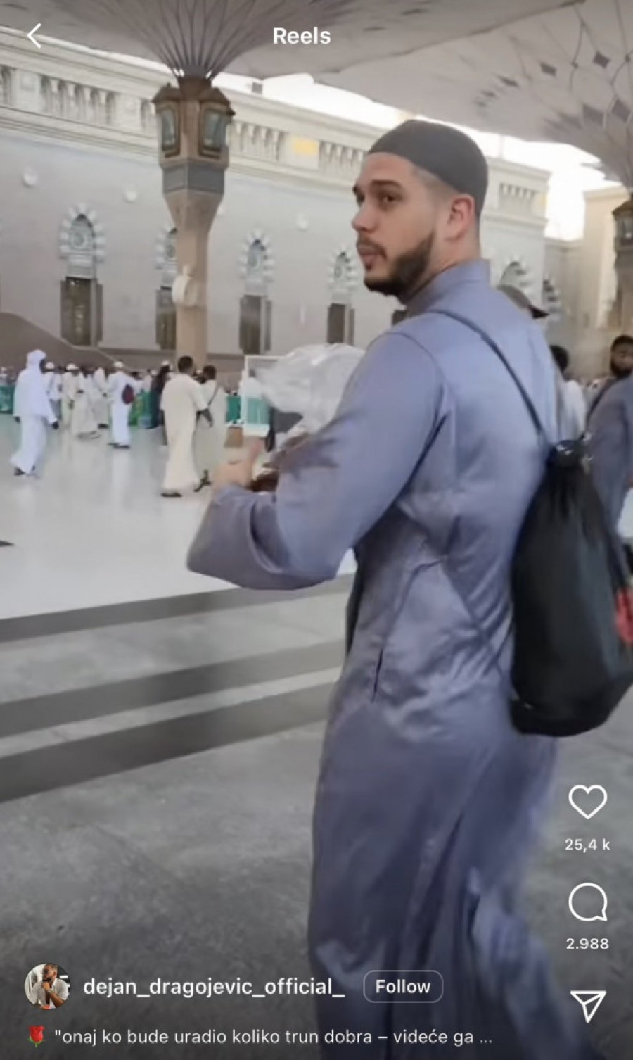 Dragojević je pre nekoliko dana otputovao u Medinu, kako bi posetio džamiju za vreme Ramazana, te je na svom Jutjubu pričao o svemu što zna o veri koju je izabrao. Snimao se i za Instagram i otkrio da napušta drugi sveti grad u islamu. On je ustao ranom zorom i uputio se ka džamiji kako bi stigao na molitvu.