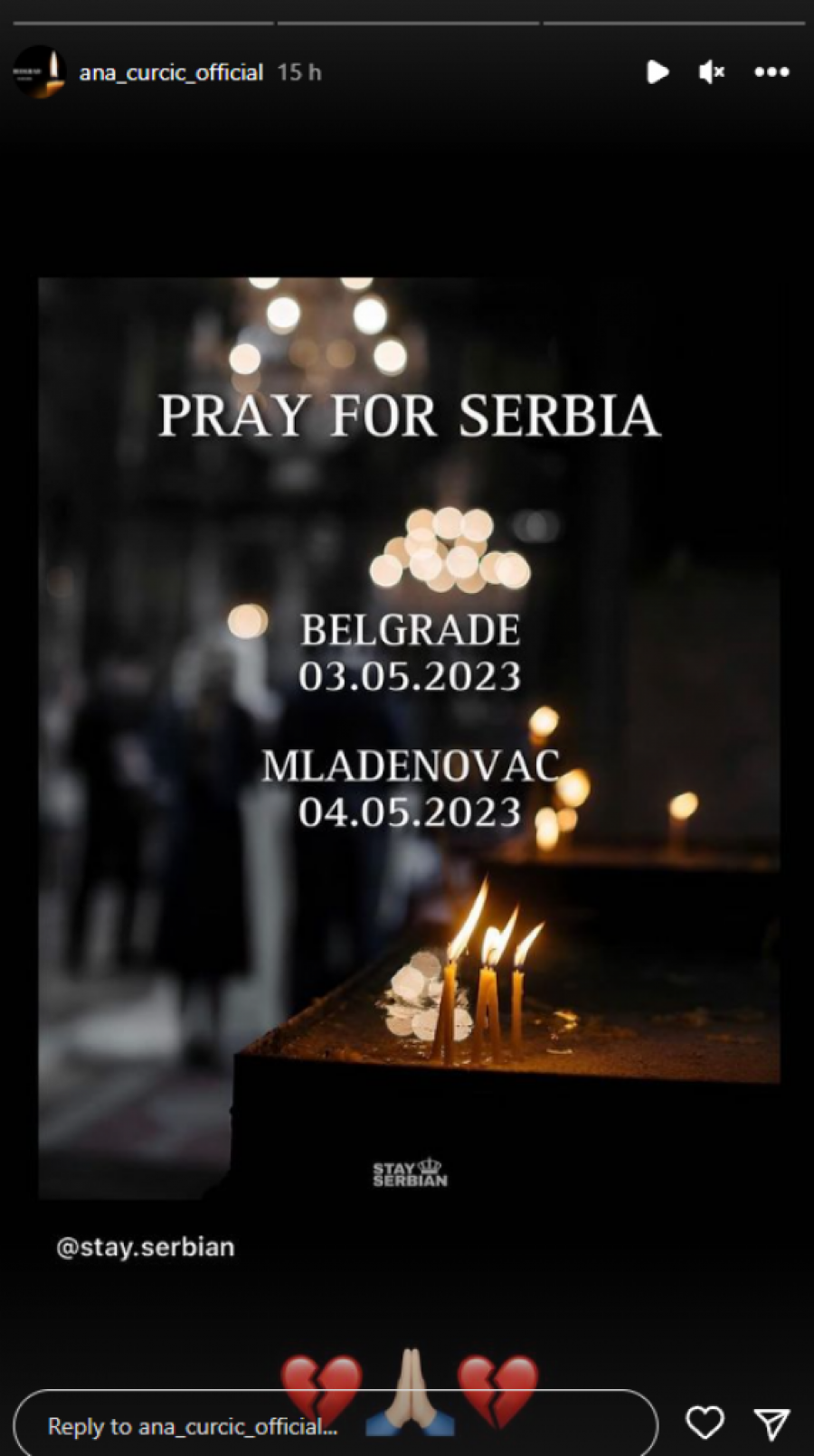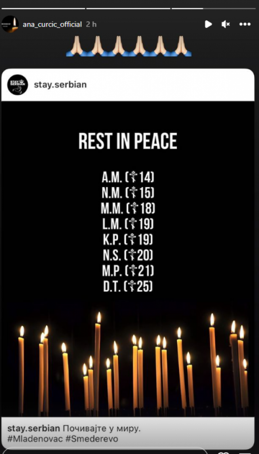Na profilu Ane Ćurčić pojavila se srceparajuća poruka žrtvama masakra u Beogradu.