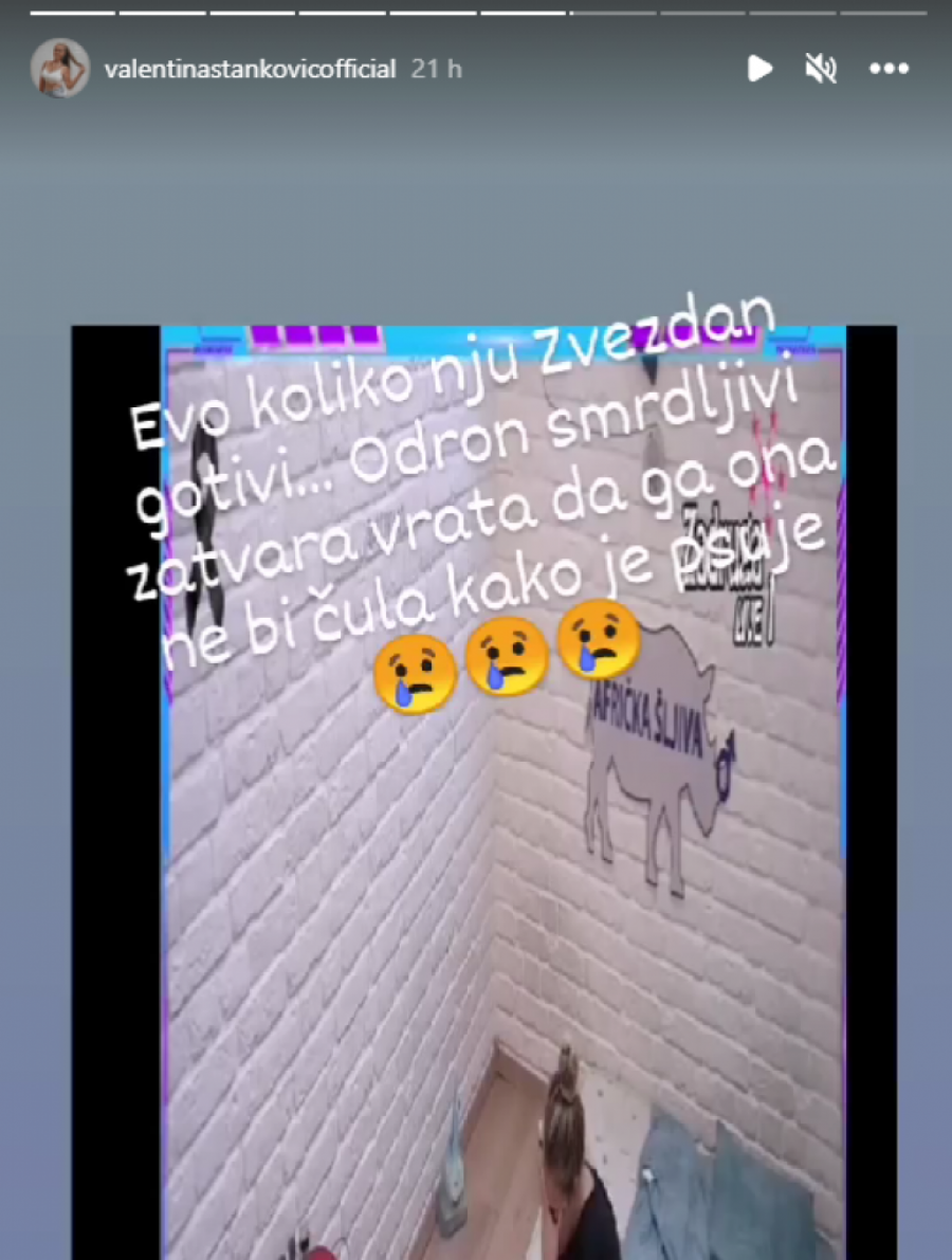 - Evo koliko nju Zvezdan gotivi... Odron smrdljivi, zatvara vrata da ga ona ne bi čula kako je psuje - stoji na Instagram storiju Valentininog profila.