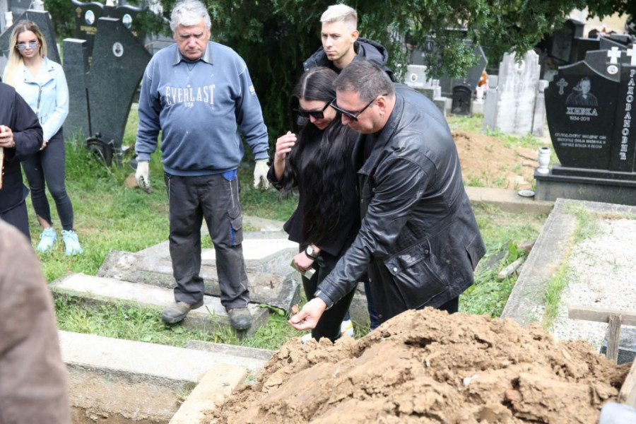 Maja Marinković na sahrani dede sa ocem Takijem Marinkovićem