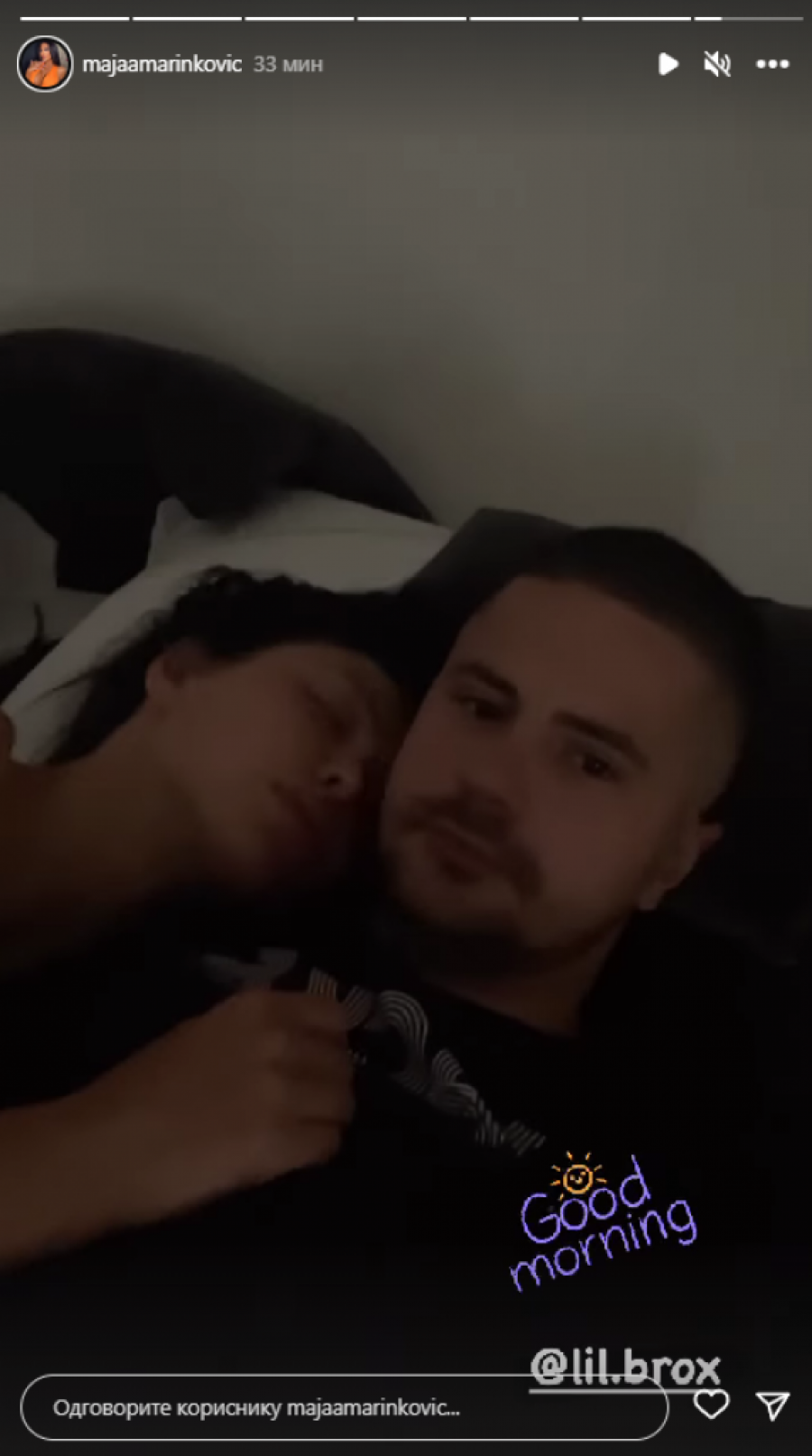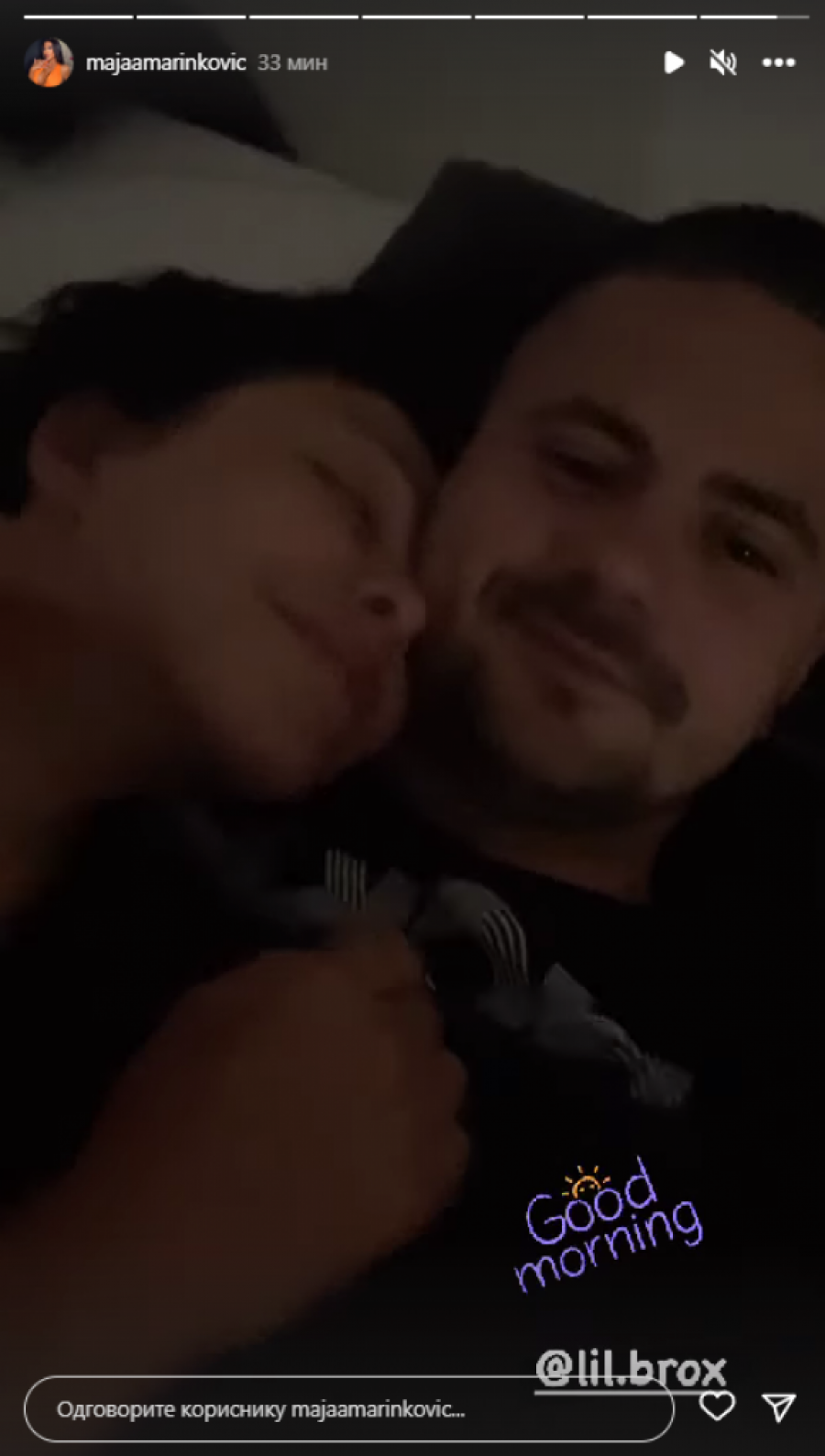 Danas su objavili snimak iz kreveta u njenom stanu i pokazali pratiocima na društvenoj mreži Instagram kako uživaju. Maja se ušuškala pored Bilala i nije skidala osmeh s lica, dok ju je on grlio.