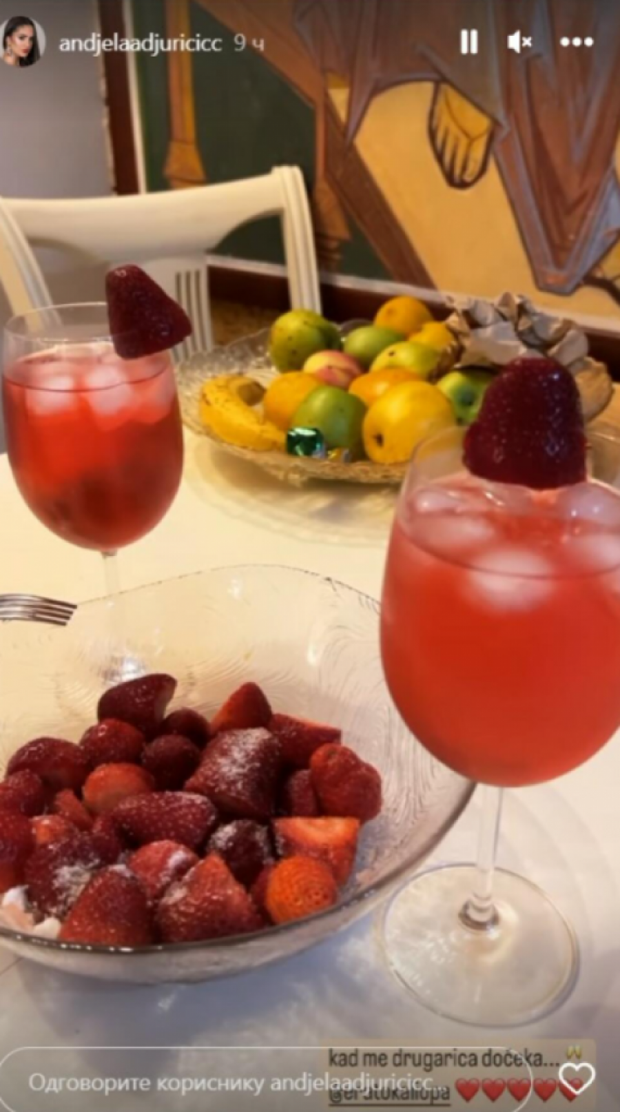 Ona je najpre podelila fotografiju iz porodičnog dvorišta, a onda iz kuće drugarice koja ju je dočekala sa vinom, te mnogi komentarišu kako Anđela slavi raskid sa Slavnićem.