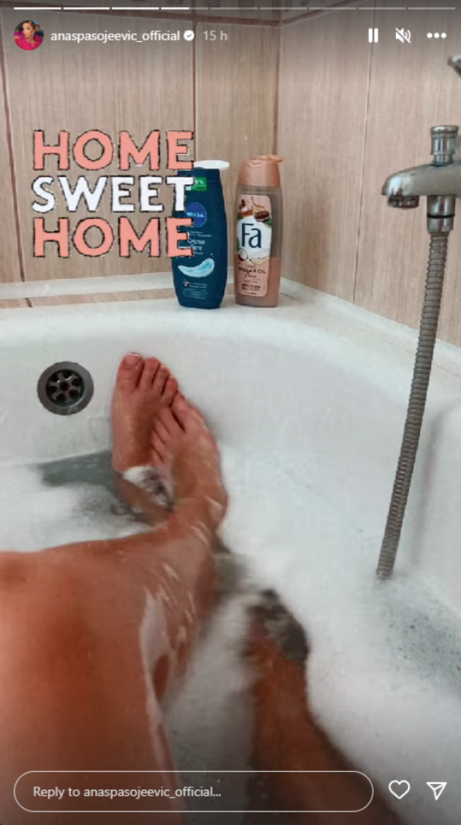 Naime, nakon Zadruge 6, Ana se pozabavila svojim fizičkim izgledom i liniju dovela do savršenstva, čime se pohvalila na Instagramu. Ona je napunila kadu sa vrelom vodom, a potom se opustila u večernjem izdanju, što je zabeležila kamerom i objavila sve na Instagramu.