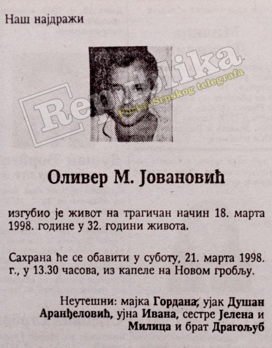 Republika vam otkriva kako je izgledao Oliver Jovanović, žrtva ubice Zvezdana Slavnića!