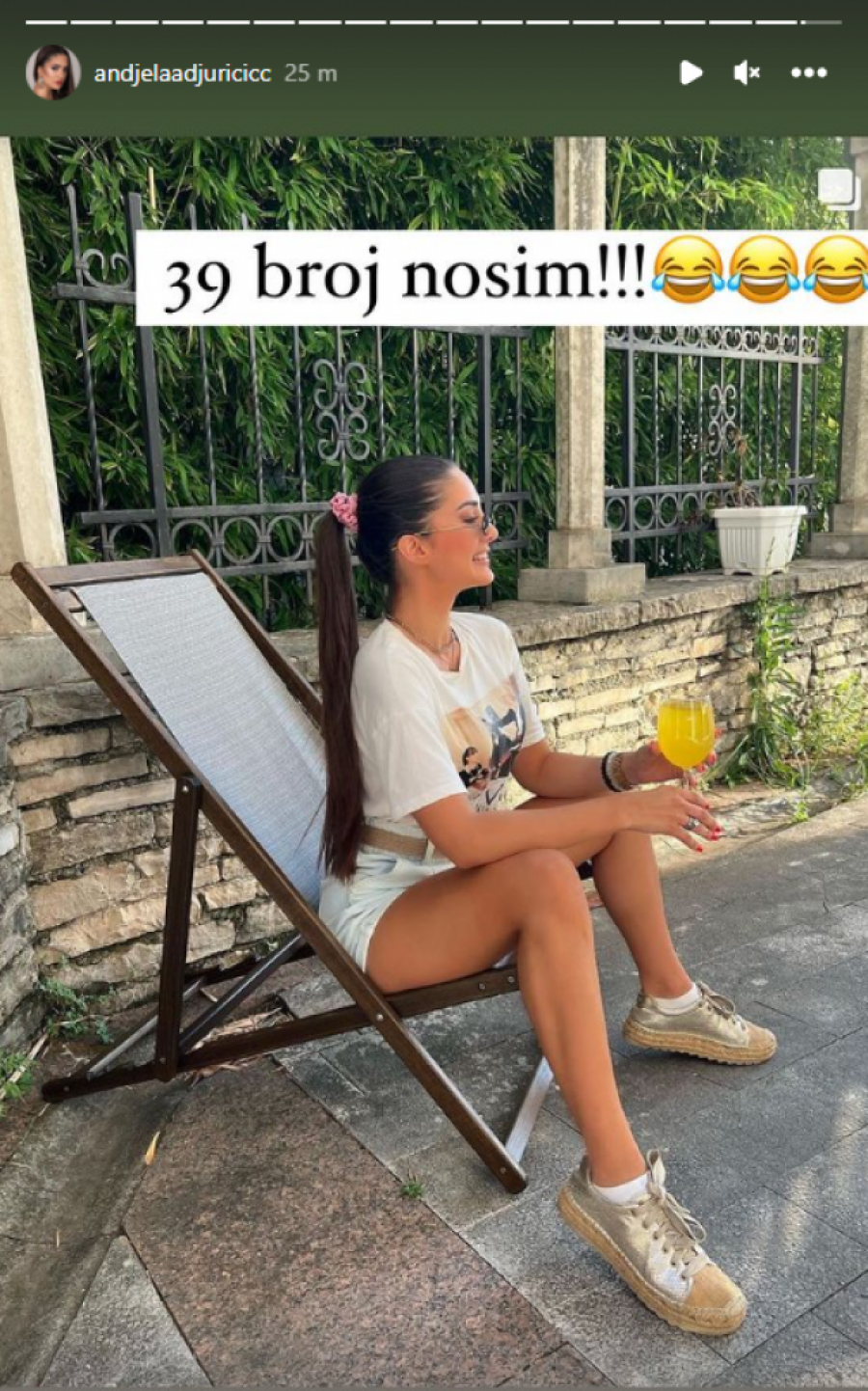No, izgleda da je Anđeli ponestalo ideja kako da fanovima, od kojih je već izmoljakala tokom boravka na imanju razne poklone, pa je tako objavila stori na kom je istakla fanovima koji broj patika nosi, kako bi joj oni odmah kupili.