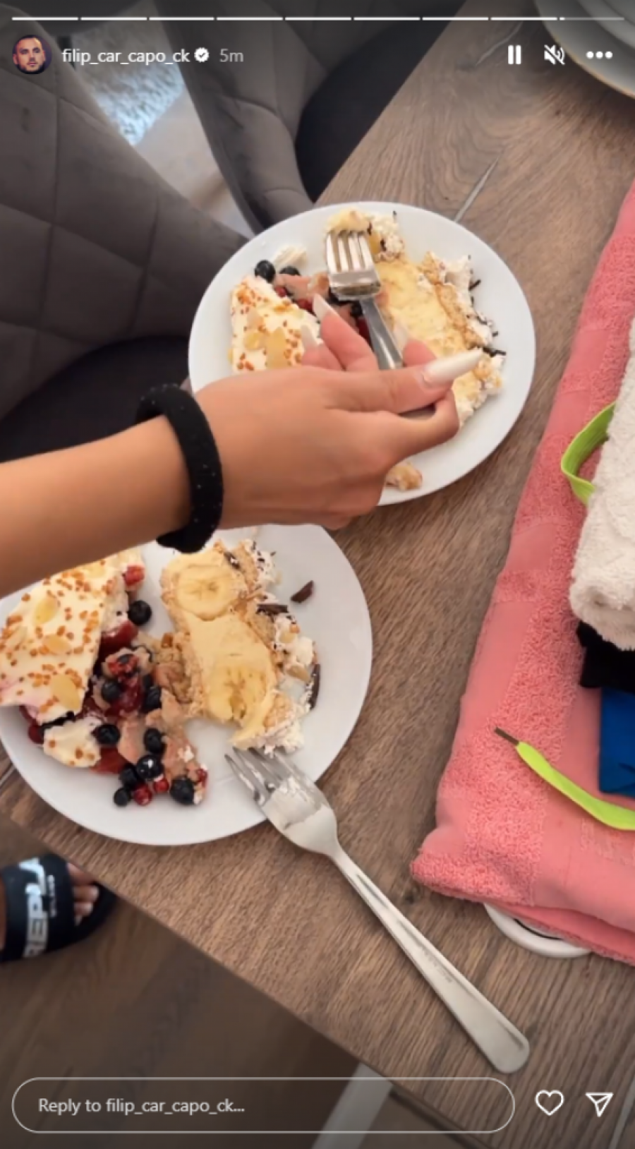 U jeku skandala, Nikolićeva se oglasila putem svog Instagram profila, pa otkrila šta se zapravo dešava u Crikvenici, između 4 zida. Objavila je stori kako Filip i ona uživaju u lepom vremenu i pripremljenoj poslastici za dvoje.