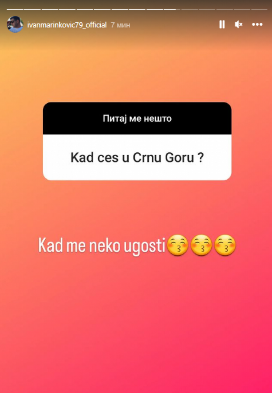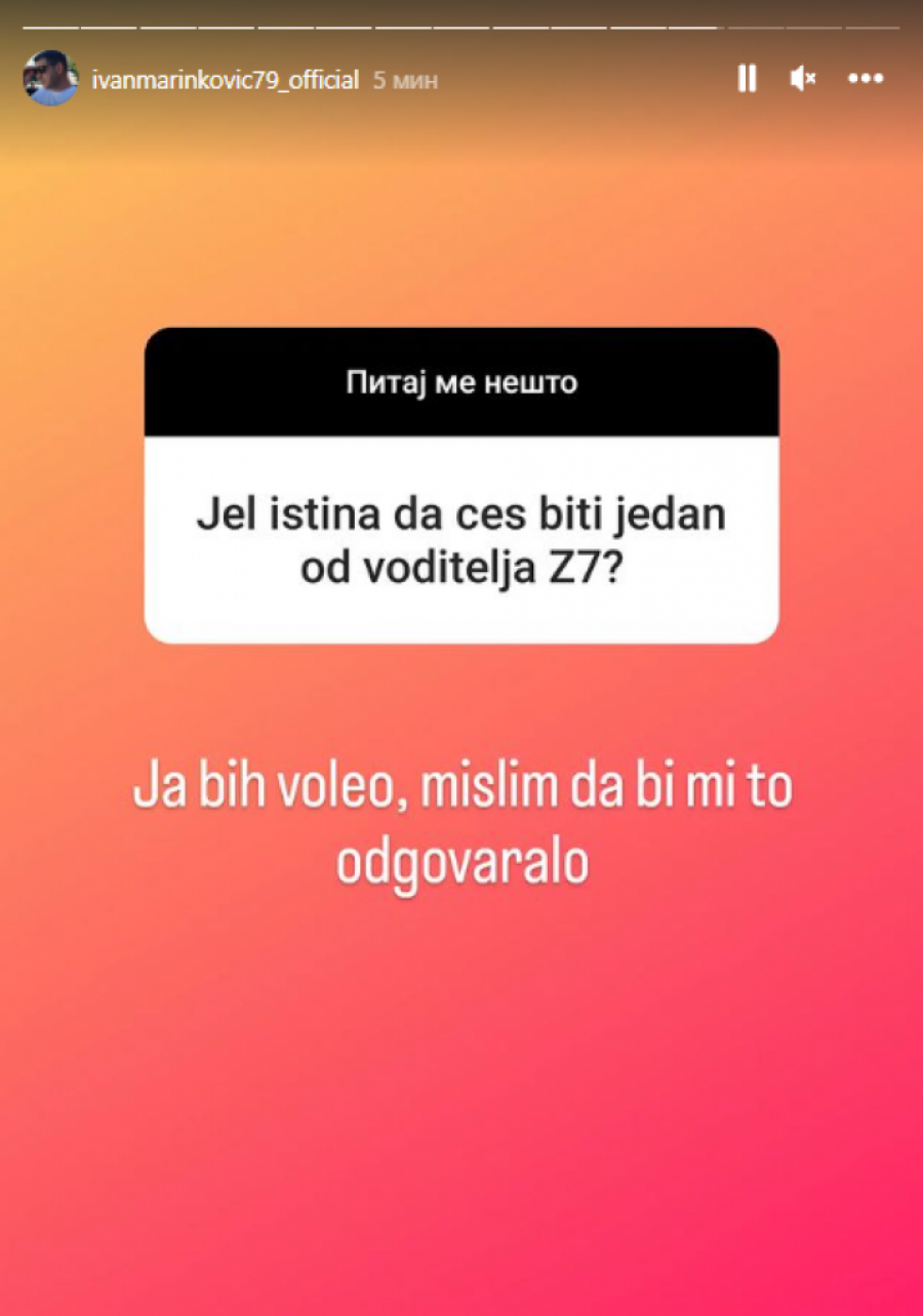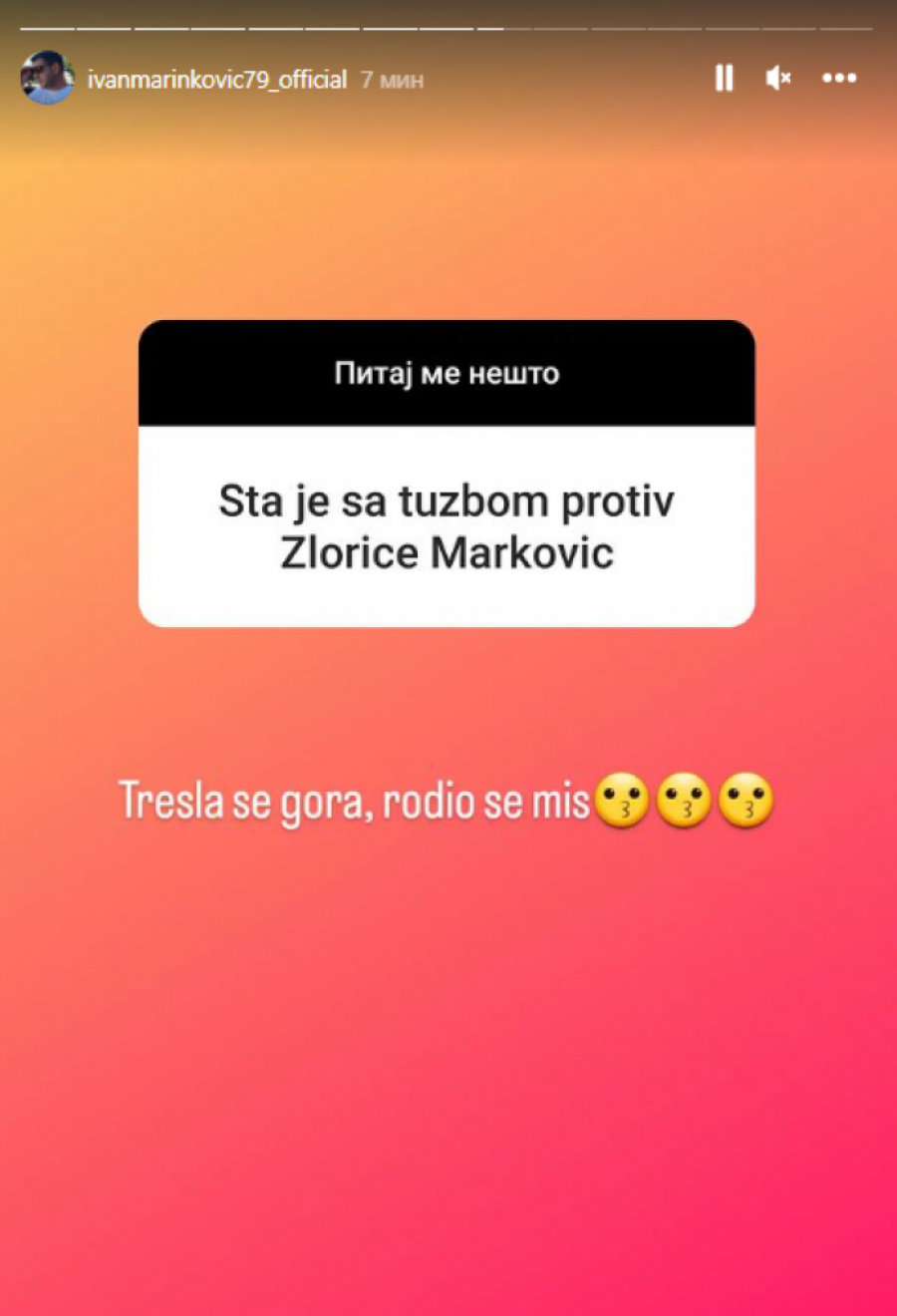 Bivši zadrugar Ivan Marinković često komunicira sa publikom putem svog Instagram profila, a danas je iskoristio priliku da odgovara na pitanja svojih fanova. Između ostalog, otkrio je šta se dešava sa tužbom Zorice Marković, da li ulazi u "Zadrugu 7 Elita", da li je dobio ponudu da postane voditelj, ali i u kakvom je odnosu sa porodicom Kulić.