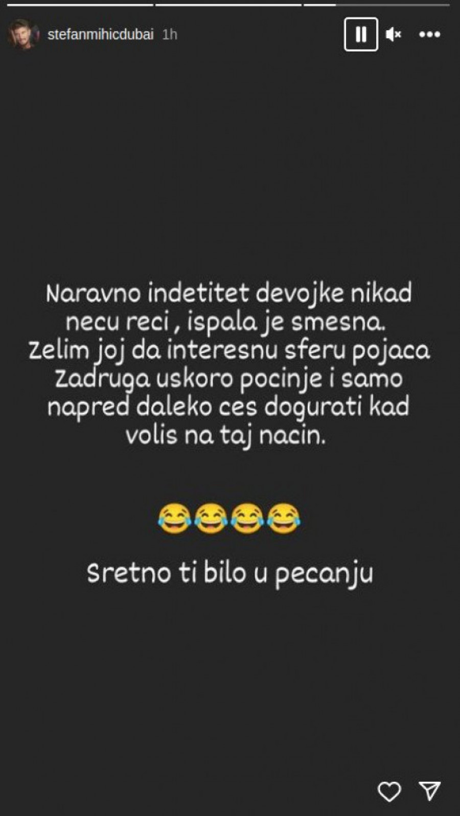 - Da li sam ja ustvari toliko glup ili dobar čovek da verujem ljudima. Aj jedanput te neko slaže i zaj*be, ali dva puta, onda sam glup i budala - napisao je Stefan, a zatim obrazložio ovu misao: