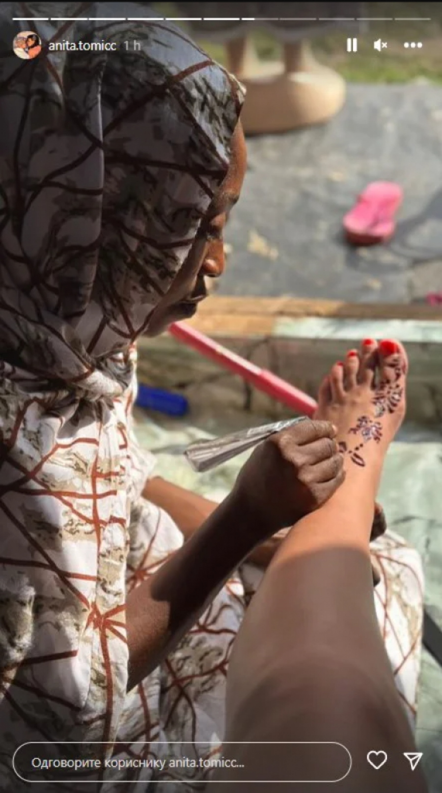 Pored toga, Anita je rešila da još jednu šaru stavi na svoje telo pa je na stopalu uradila kanu (priveremenu) tetovažu a koja je Matorina rekacija bila na to, ostaje nam da saznamo.