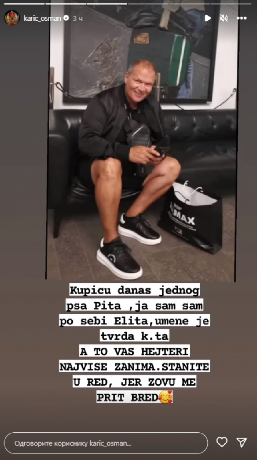 - Kupiću danas jednog psa Pita, ja sam sam po sebi "Elita", u mene je tvrda k*ta. A to vas hejteri najviše zanima, stanite u red, jer zovu me Pit Bred - započeo je Osman, pa nastavio: