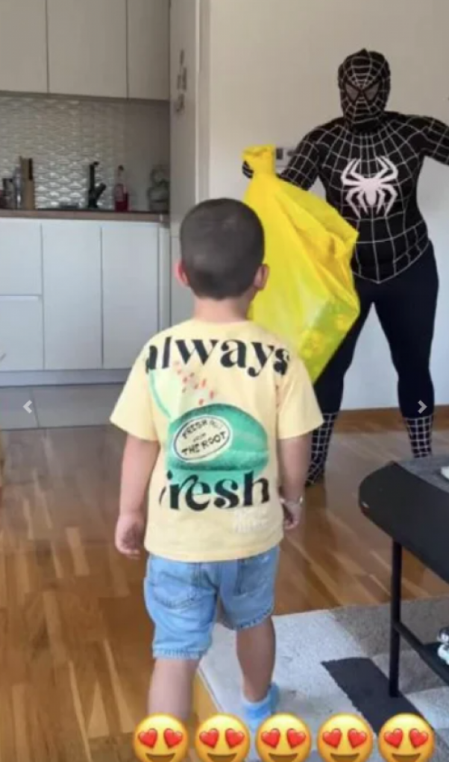 Naime, Jovana se obukla u kostim Spajdermena i iznenadila njenog sina, skakala po kući i započela igru sa njim.