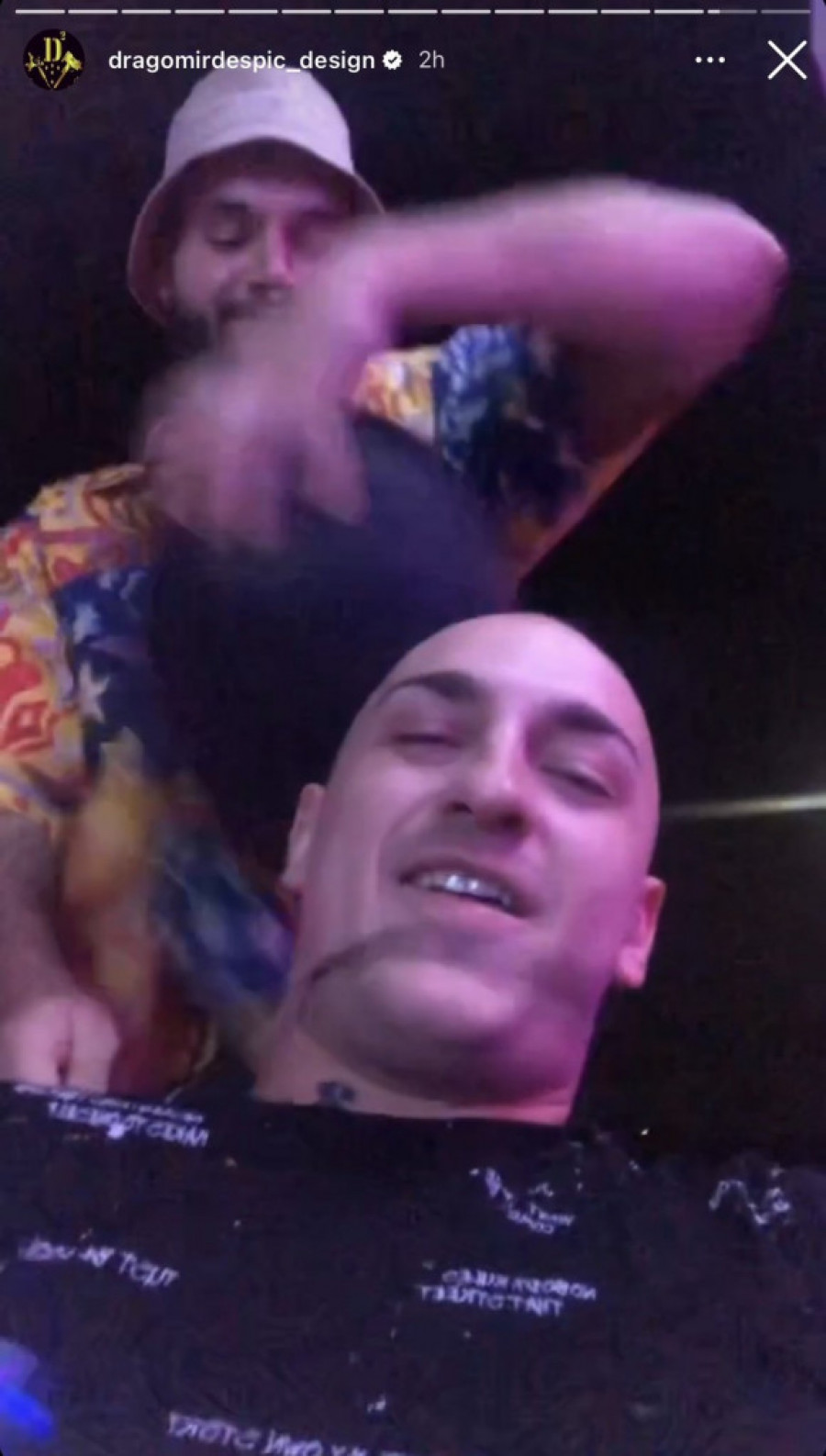 Međutim, na pomenutoj žurci našao se i Desingerica, ali se on u ovoj ekipi nije snimao, verovatno kako bi izbegao još jedno povezivanje sa rijaliti zvezdom, ali se zato usnimio sa svojim kolegom Nućijem, što ga je odalo da se nalazi na istom mestu, i to u neposrednoj blizini svoje ljubavnice, sudeći da je reper oženjen.