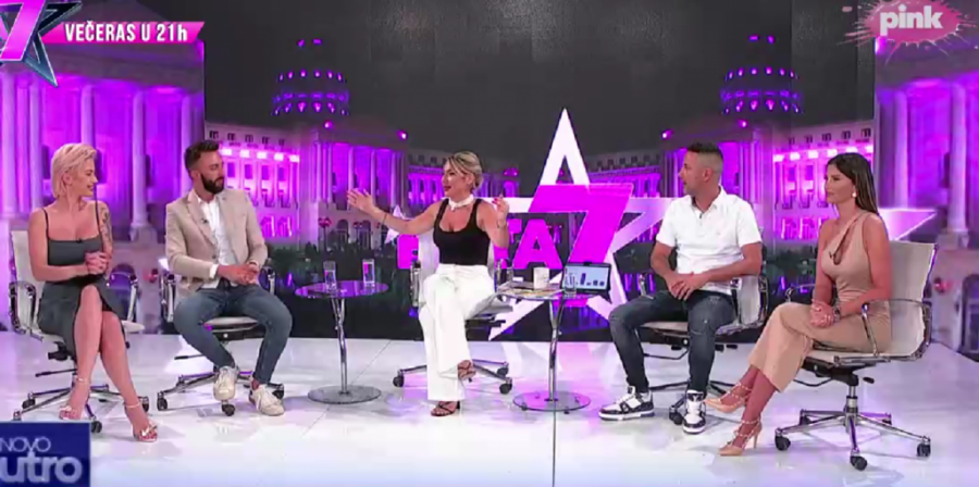 12.40 - Voditeljka Jovana Jeremić ugostila je kolege i voditelje rijalitija ,,Elite", među kojima su Ana Radulović, Dušica Jakovljević, Darko Tanasijević, a tu je bio i Marko Đedović.