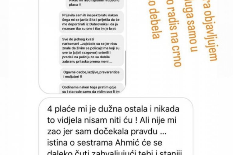 - Sita Ahmić, sutra objavljujem 160.00' duga samo i dubrovniku što radiš na crno, glupačo debela - napisao je Asmin na sledećem storiju koji je objaviona društvenoj mreži Instagram.