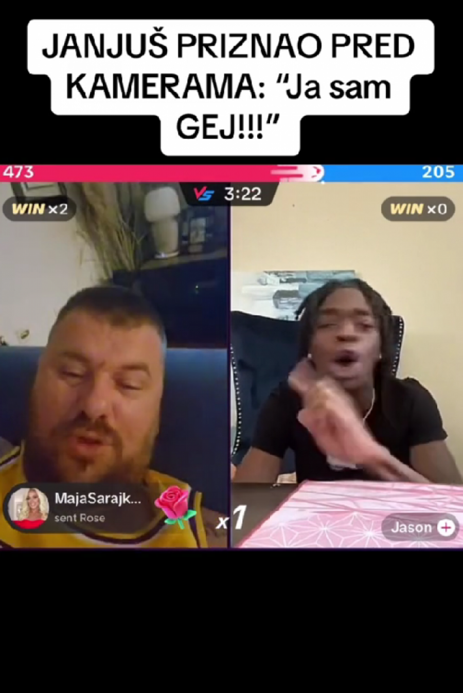 Međutim, na internetu kruži snimak sa TikToka, gde Janjuš priznaje da ipak voli muškarce, a uhvaćen je i tokom razgovora sa korisnikom pomenute društvene mreže, koga je nazvao "svojim dečkom":