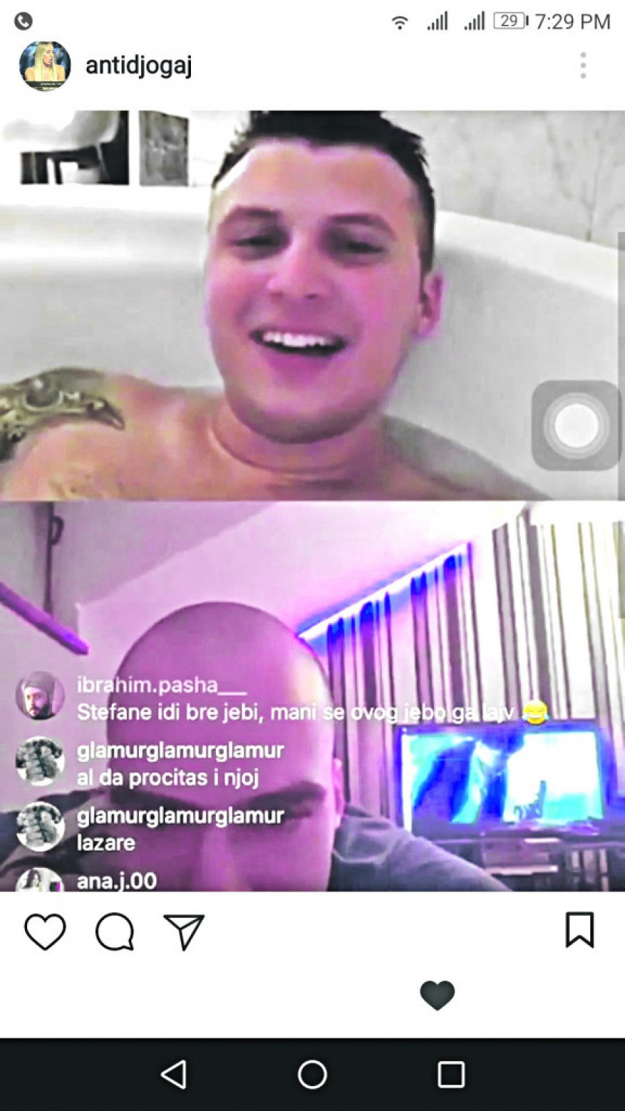 Foto: youtube.com/Zadruga OfficialNaime, Stefan je razgovarao sa Lazarom putem društvene mreže, a pratioci koji su gledali snimak postavili su pitanje Lazaru i Stefanu o najpopularnijim zadrugarima Luni i Slobi.