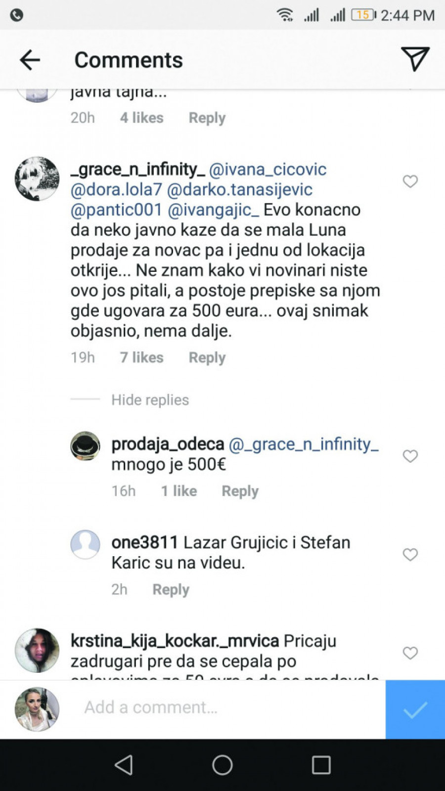 Video je postao viralan, a u komentarima su se mogle pročitati najrazličitije tvrdnje. Od toga da Luna naplaćuje seks 500 evra do toga da je pružala seksualne usluge za 50 evra.