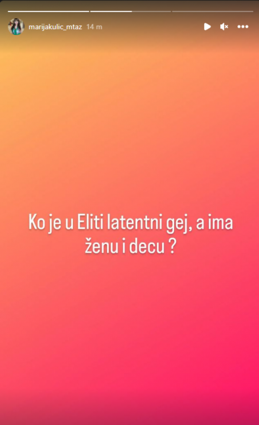 - Ko je u Eliti latentni gej, a ima ženu i decu? - napisala je Marija na Instagramu, pa dodala: