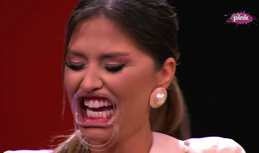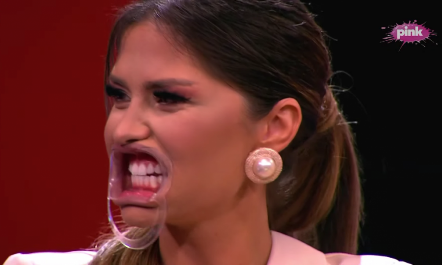 Naime, Radulovićka je najpre lice sakrila rukama, kako je gledaoci ne bi videli, ali je ubrzo prasnula u smeh, te se obratila voditelju Ognjenu Amidžiću i pokazala da u ustima ima gumenu protezu, kako bi za potrebu emisije odradila jednu igricu.