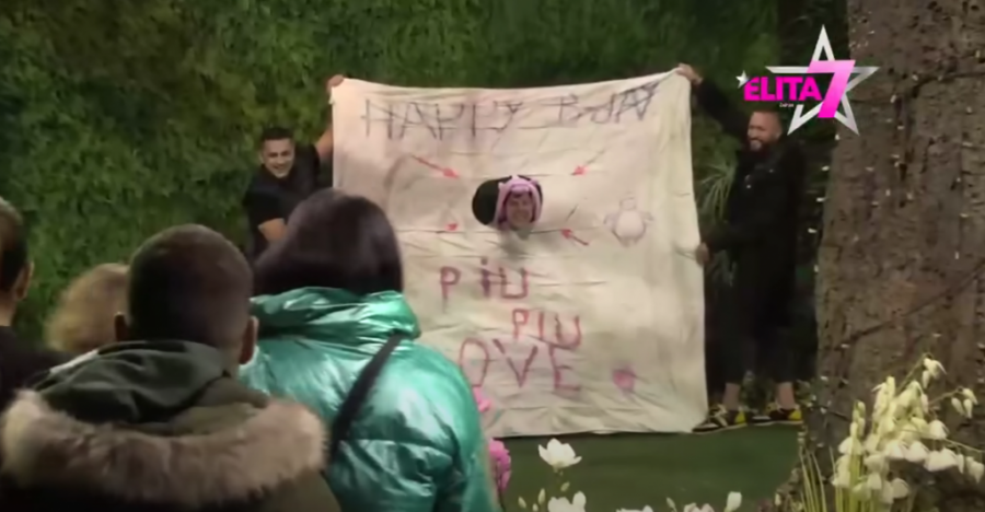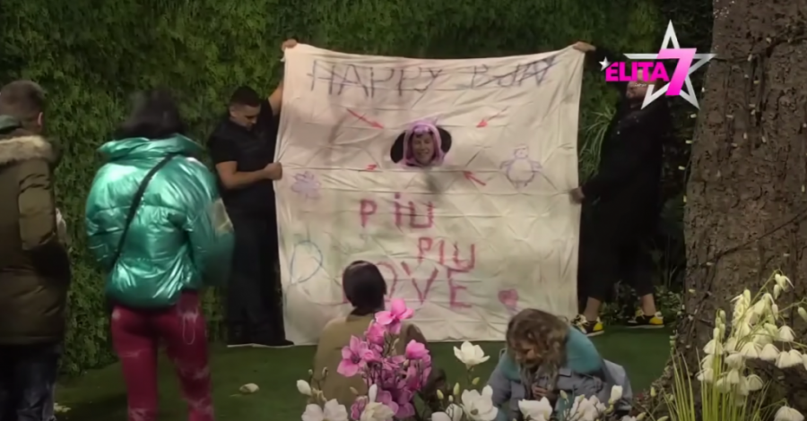 Matora je u Rajskom vrtu napravila veliki transparent sa rođendanskom porukom, a u sredini je napravila rupu kako bi izbacila svoju glavu. Tomićeva je takođe bila maskirana u jednoroga, što je dodatno ulepšalo ceo događaj.