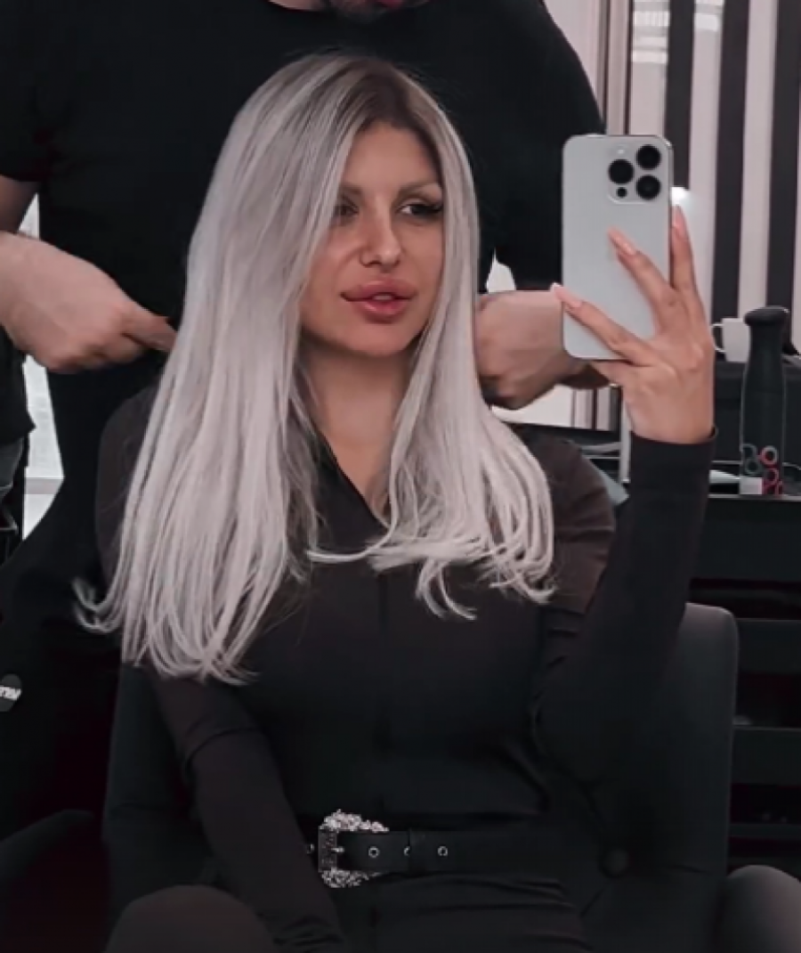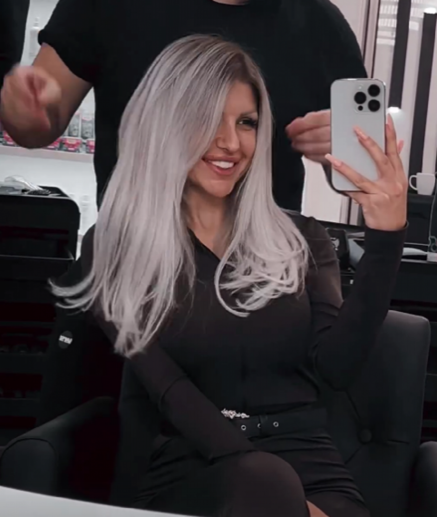 Iako je plava kosa njen zaštitni znak, sada je više "pepeljasta", a koliko je zadovoljno krajnjim rezultatom, govori i njen osmeh.