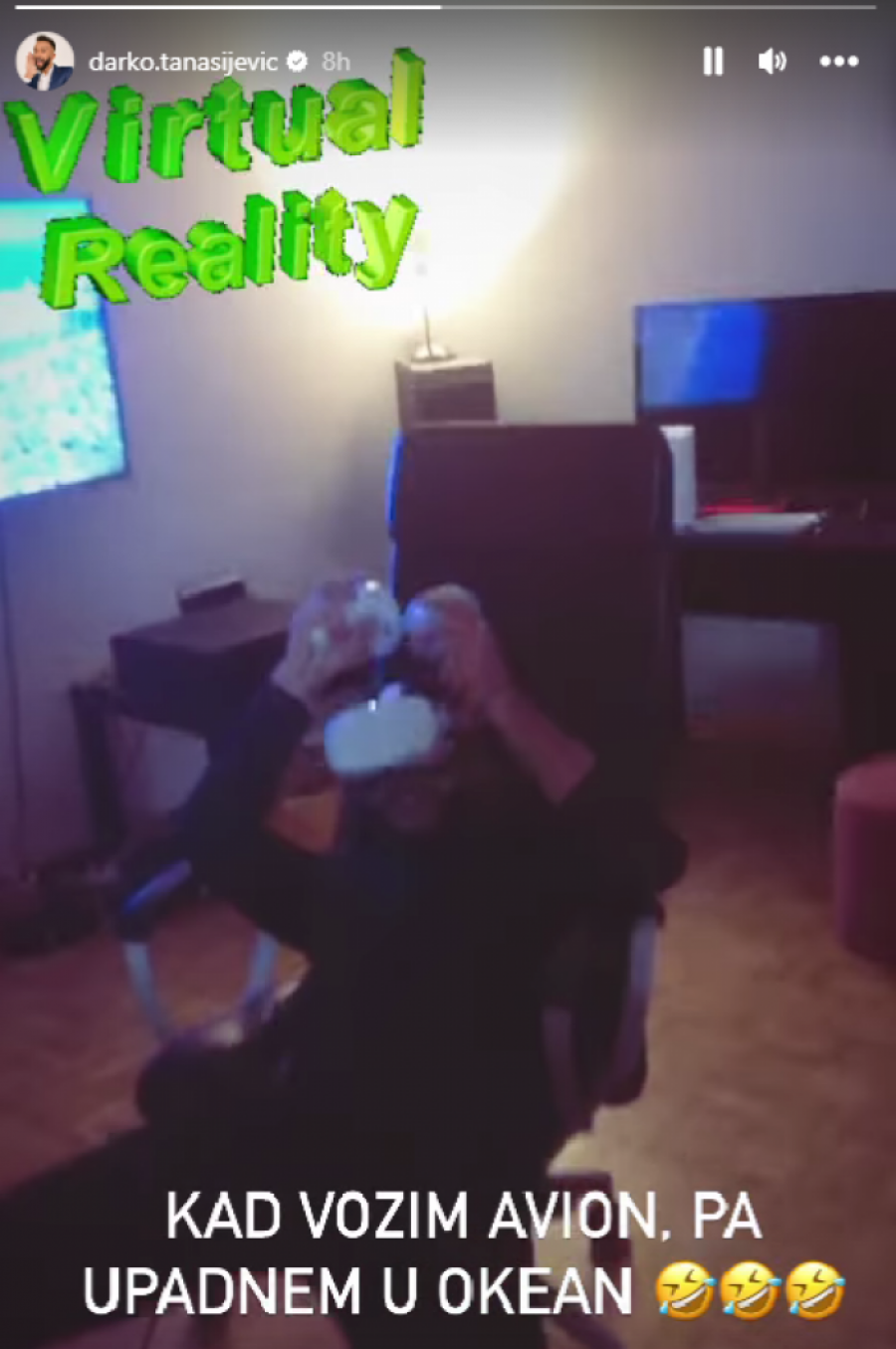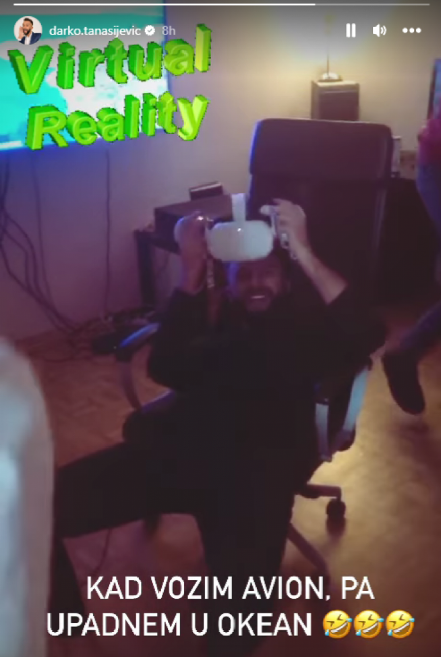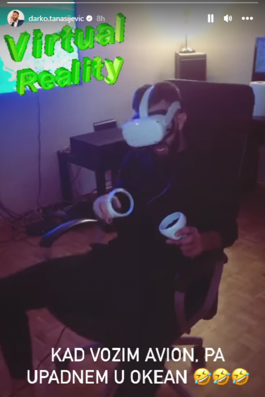 Naime, Darko je sinoć usnimio svoje iskustvo sa najmodernijom tehnologijom. Radilo se o naočarama koje se stave na lice, kako bi bio bolji doživljaj igrice. Tanasijević je u jednom trenutku počeo da vrišti iz sveg glasa jer je imao osećaj da je stvarno avionom upao u okean, pa mu se čak učinilo da ga je neko od njegovih prijatelja polio vodom.