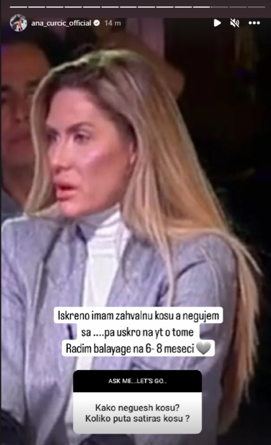 - Iskreno, imam zahvalnu kosu, a negujem sa, pa uskoro ću o tome pričati na Jutjub kanalu. Radim uglavnom balejaž na 6 do 8 meseci - napisala je Ana.