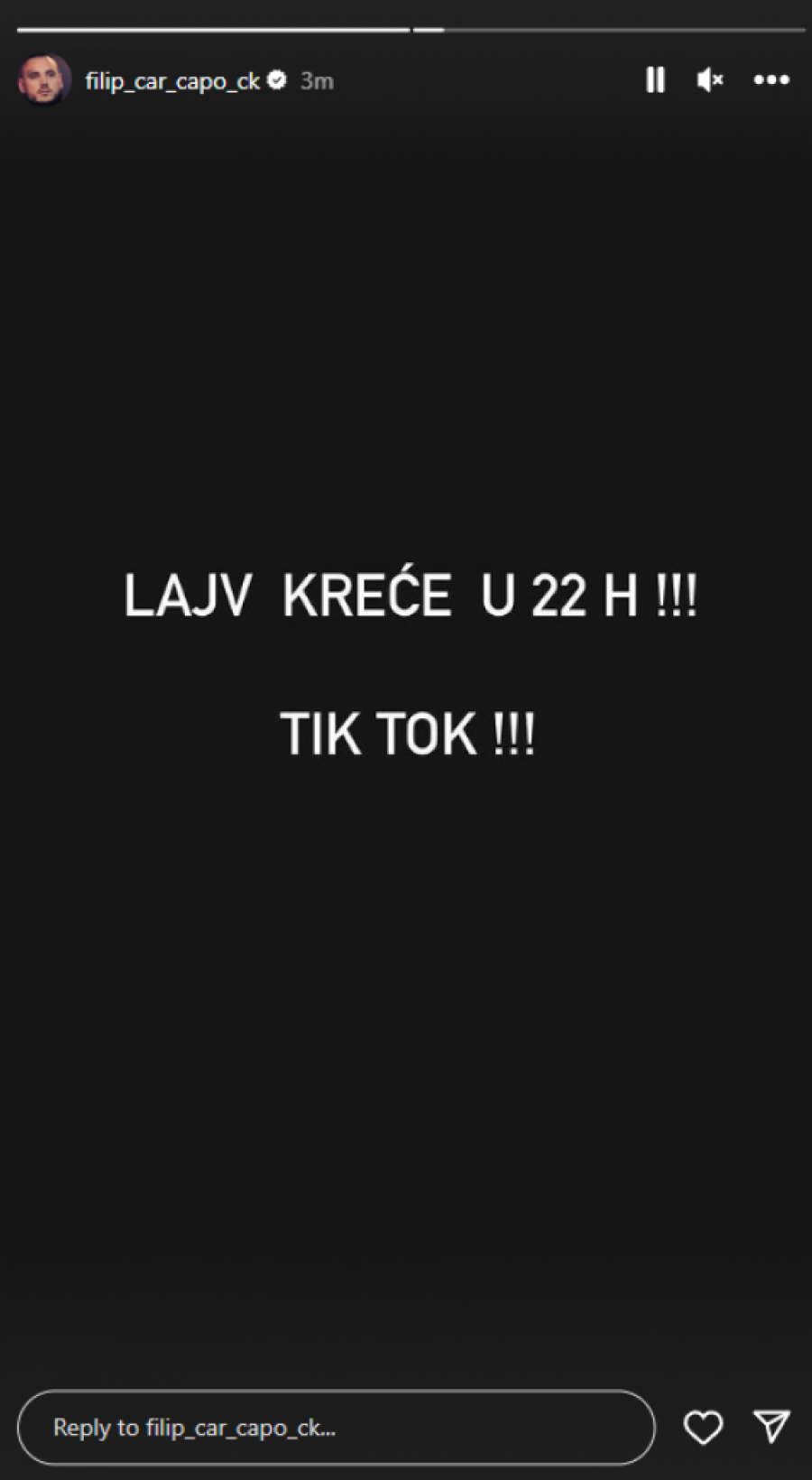 Bivši zadrugar Filip Car oglasio se na svom Instagram profilu sa velikim vestima za sve svoje pratioce. Najavio je da će večeras u 22 časa održati lajv prenos na svom TikTok profilu.