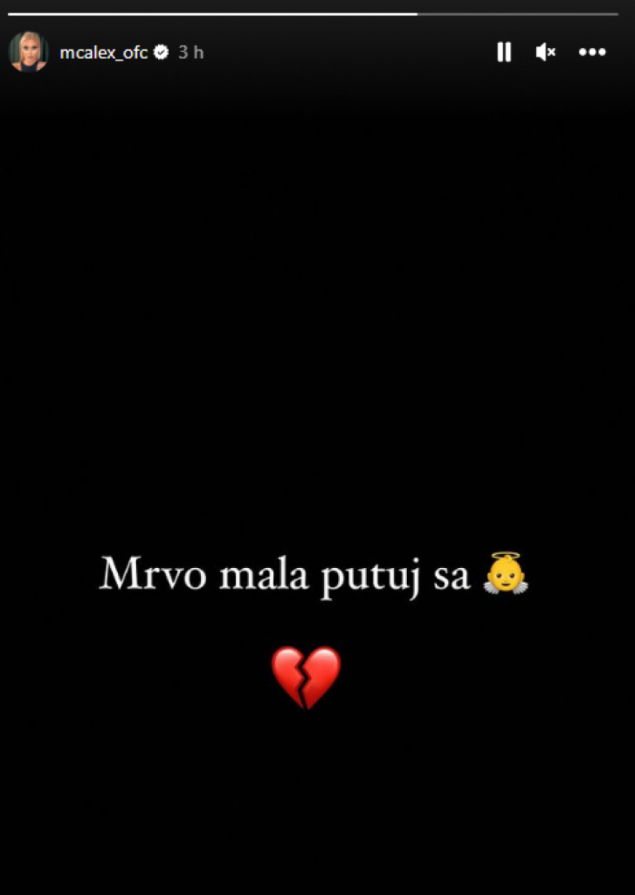 - Mrvo mala, putuj sa anđelima - bila je poruka koju je Aleks ostavila na Instagram storiju, uz emotikon slomljenog srca.