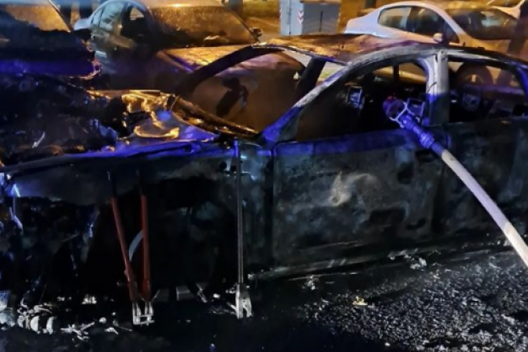 TAKIJU ZAPALJEN AUTOMOBIL: Jeziv prizor demoliranih kola, POLICIJA I VATROGASCI hitno reagovali! (FOTO)
