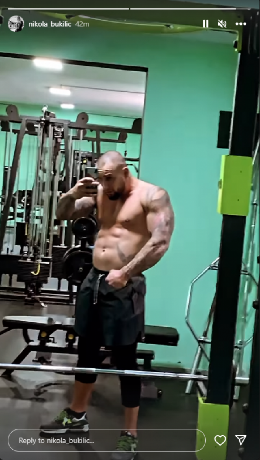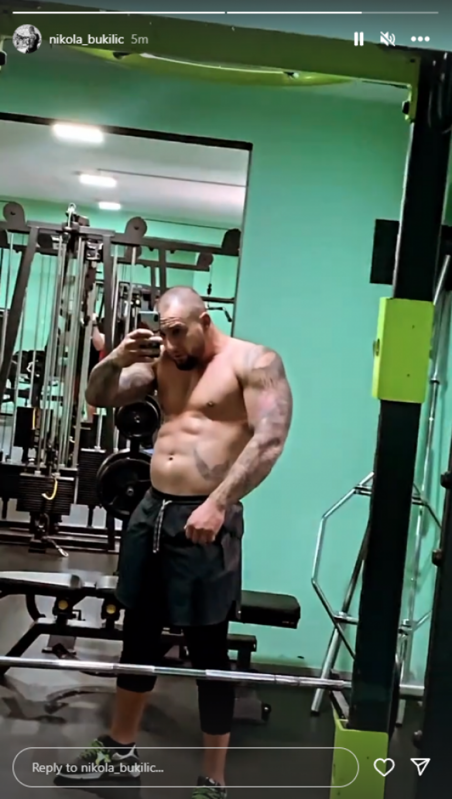 Naime, Bukilić se vratio u Podogoricu, a po svemu sudeći, svaki slobodan trenutak koristi da bude u teretani i radi na svom fizičkom izgledu, ne bi li što pre vratio formu s kojom je ušao u "Elitu". Inače, Nikola je bio glavna tema komentarisanja na društvenim mrežama kad se pojavio među učesnicima upravo zbog svog kršnog fizičkog izgleda.